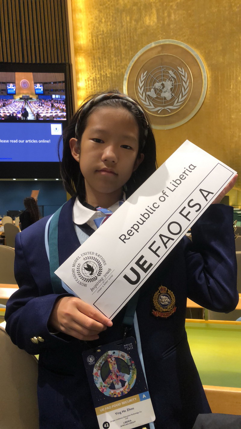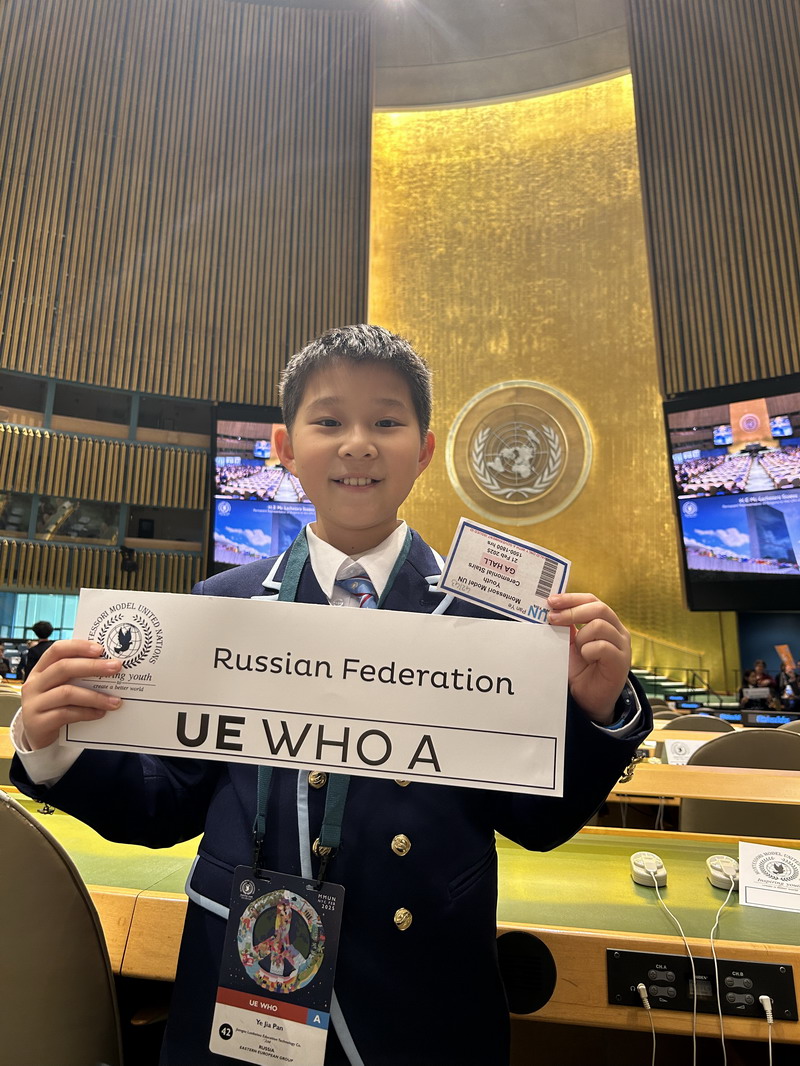 在联合国总部的金色大厅内,那些平日里只能在新闻中见到的会议室让“小外交官们”深受触动,激发了他们对国际关系和外交事务的兴趣。“小外交官们”身着正装,分别以俄罗斯、巴勒斯坦、利比里亚三国外交官的身份,与来自世界各地的同龄人交流,共同探讨解决方案,体验真实的国际外交场景。