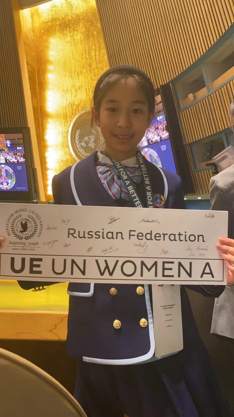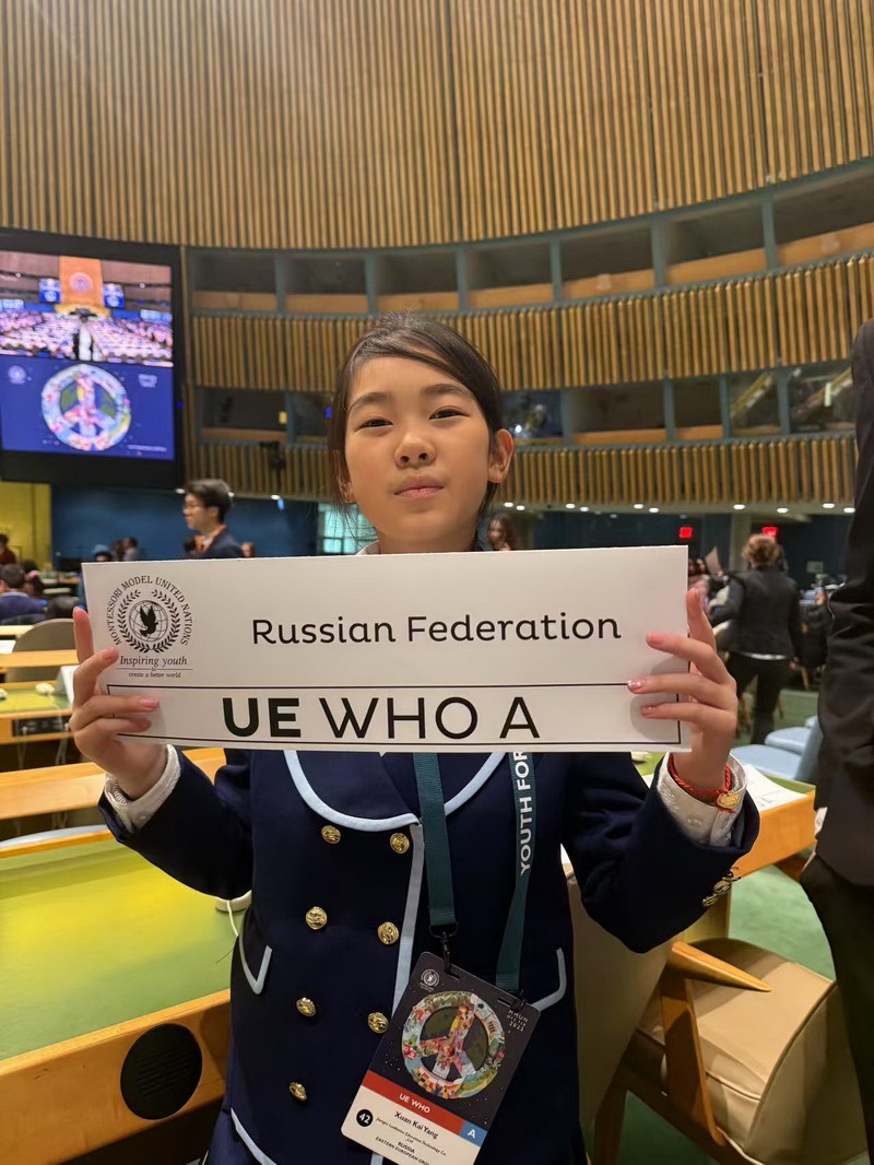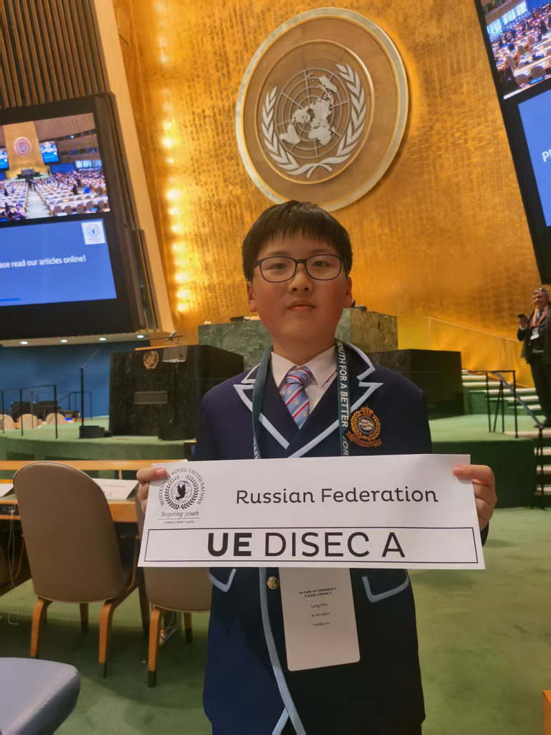 最近,我和同学们一起漂洋过海奔赴美国模联大会,从下飞机的那一刻起,紧张与憧憬就交织在心头,而这场盛会的精彩远超想象。参与美国模拟联合国大会,是一场思想的激荡。在这里,我代表俄罗斯,参加了关于女性地位和权利的讨论。我接触到来自不同国家和文化背景的学生,并且深切感受到女性权利问题的多元性与复杂性。这不仅锻炼了我的表达和沟通能力,更让我明白国际合作的关键,激励我不断探索,为全球发展献力。