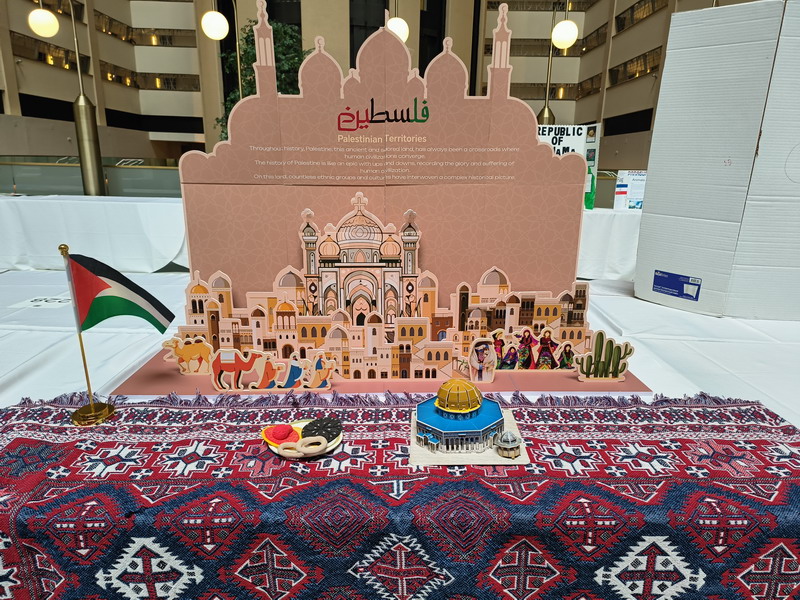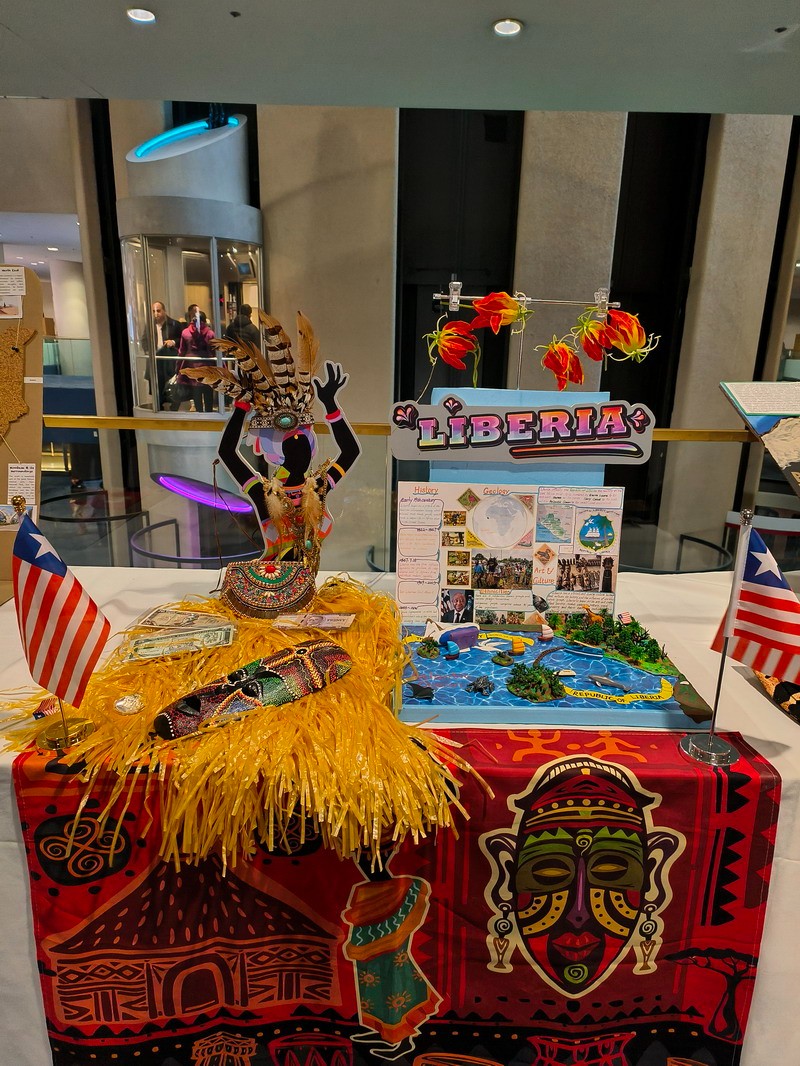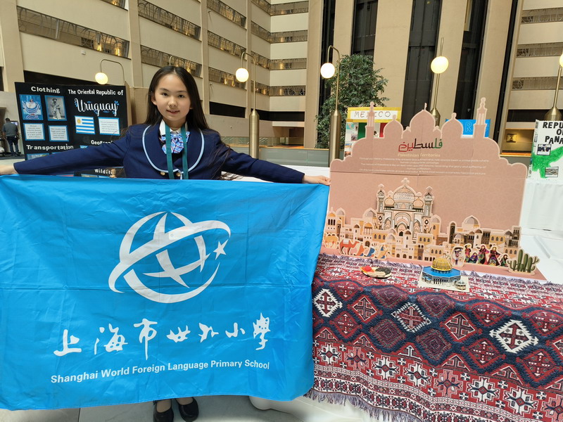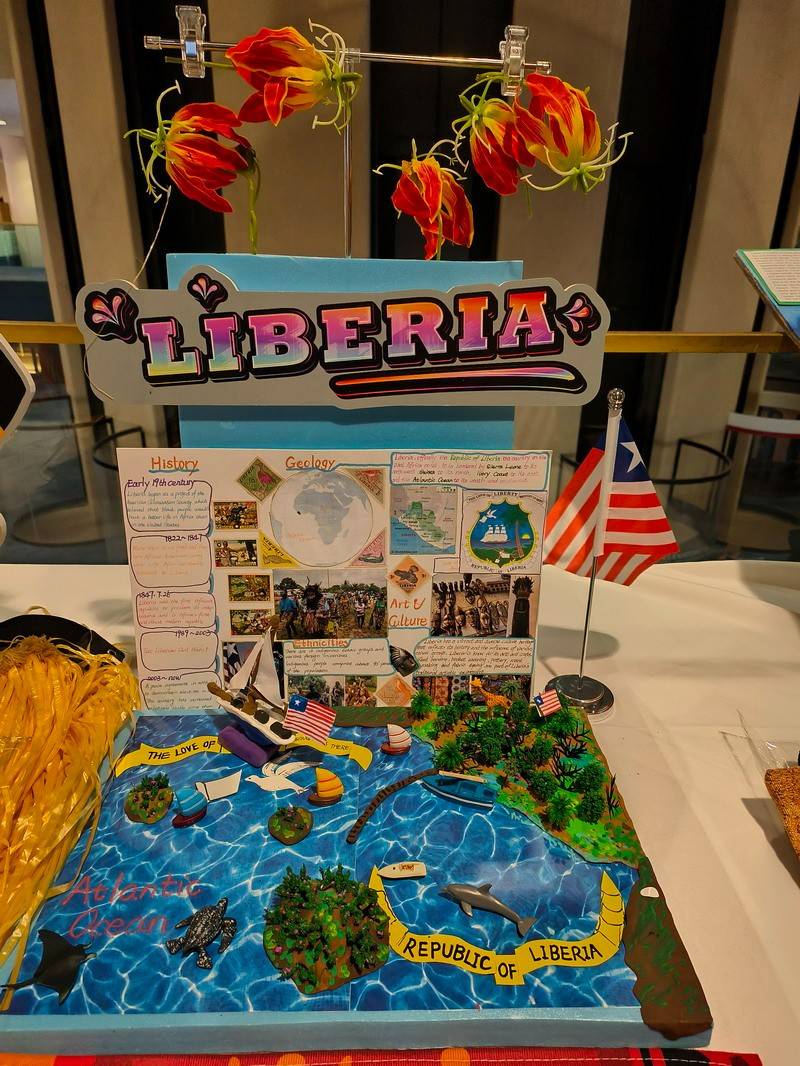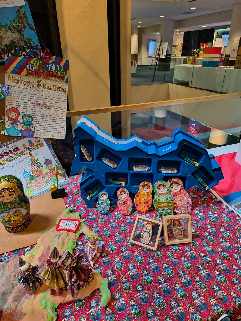 为了更好地展示俄罗斯、巴勒斯坦和利比里亚这三个国家的文化,“小外交官们”手工搭建了富有创意的展台,并自信地向参会者介绍这些国家的信息以及它们在全球议题中的立场和贡献。这些富有创意的展台获得了其他与会代表的大力称赞。