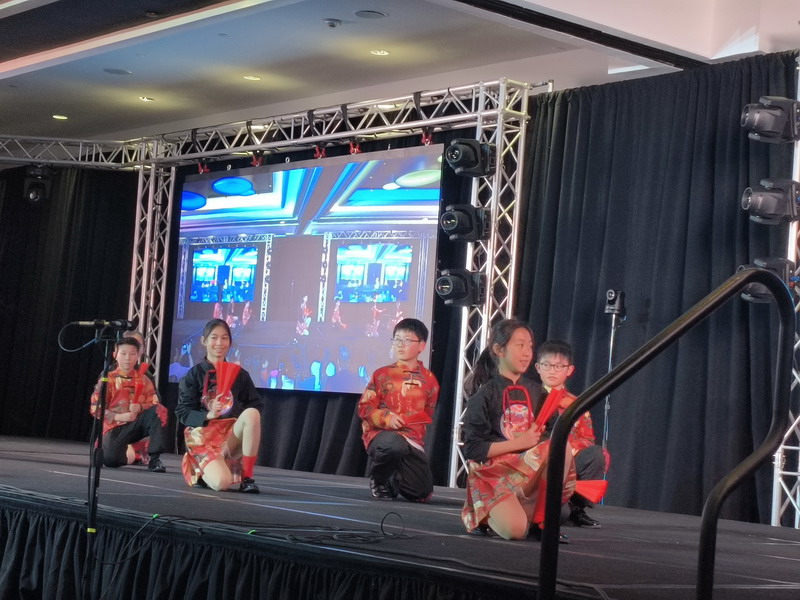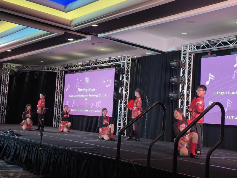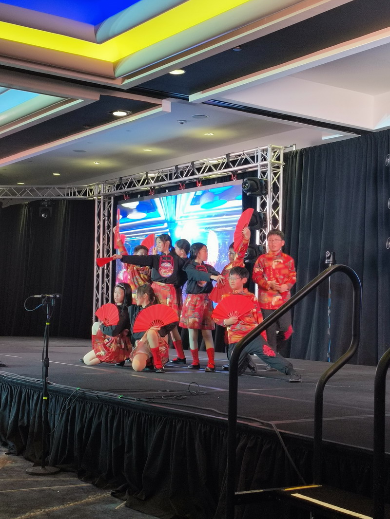 在“文化之夜”的交流活动中,同学们身穿中国红服装,表演了舞蹈《寄明月》,并将自己准备的哪吒中国文创送给台下的与会代表和外国友人,这份特别的礼物深受喜爱,不仅是一种艺术的分享,更是一座文化的桥梁,连接起不同国家和民族之间心灵的桥梁。