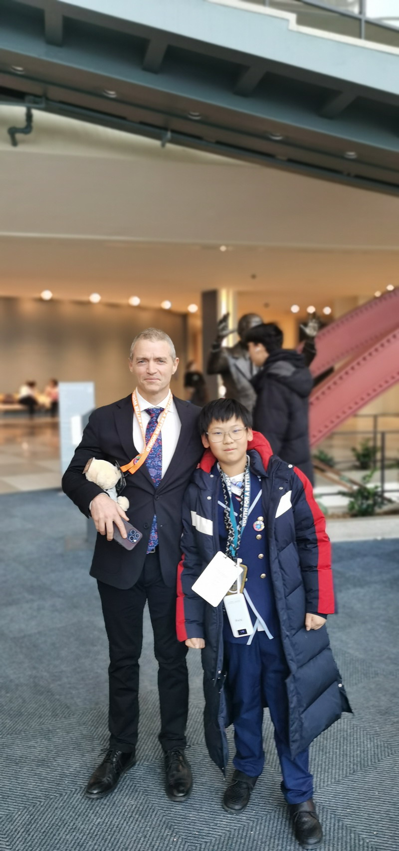 “小小外交官”们还主动社交,欢乐地与模联活动的创始人兼首席战略官Judith Cunningham女士以及首席运营和教育官Gabriel forestieri先生交流。他们自豪地介绍了中国上海的风土人情,自信地介绍了学校的课程与学习。最后赠送了学校的吉祥物世外小熊,还邀请他们来中国上海,来百瑞彩票作客。中国学生的纯真和热情令两位官员十分激动,他们高兴地与学生们合影留念,表示一定要来上海走一走。