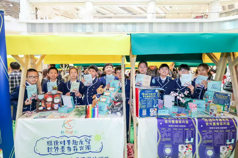 2025年4月13日,2025“校园企业家”线下实践活动在虹桥南丰城顺利进行。双语部五年级“棋趣世外”队参加了本次实践活动。“小企业家”们认为在数字化浪潮下,电子产品无孔不入,青少年儿童深陷其中,不仅导致近视率飙升,还极大地影响了专注力和社交能力。为此,他们设计了一款便携式多功能游戏棋盒,打破电子枷锁,解锁多元棋趣,为消费者打造健康的娱乐方式。创业初期,他们通过调查问卷的方式选定最受欢迎的4款棋;自主设计棋面和棋盒;确定成本区间,线上线下寻找合适的供应商;根据市场调研情况和预销售情况分批生产。