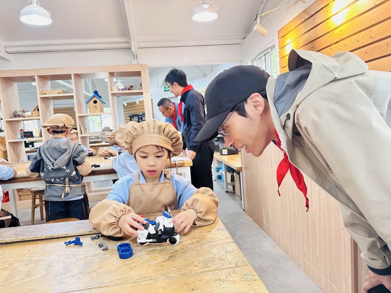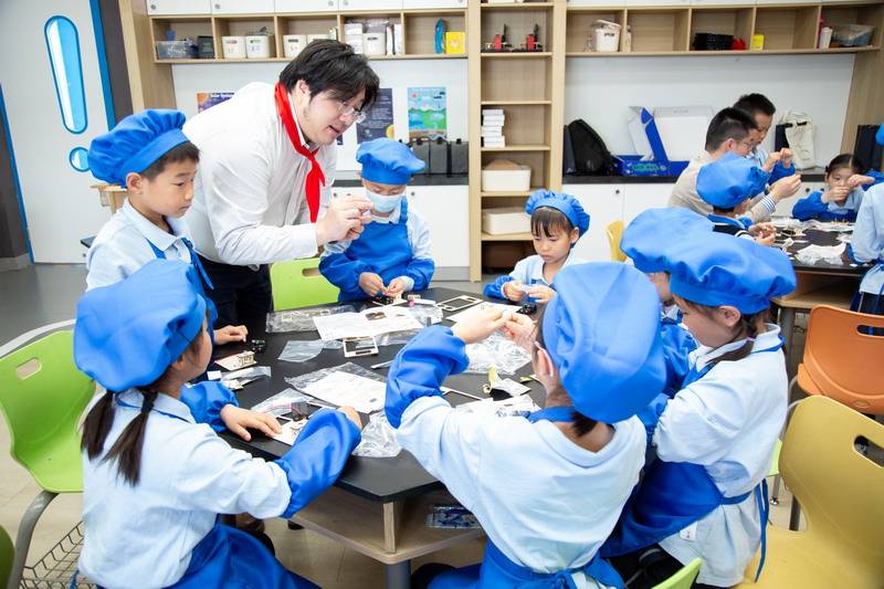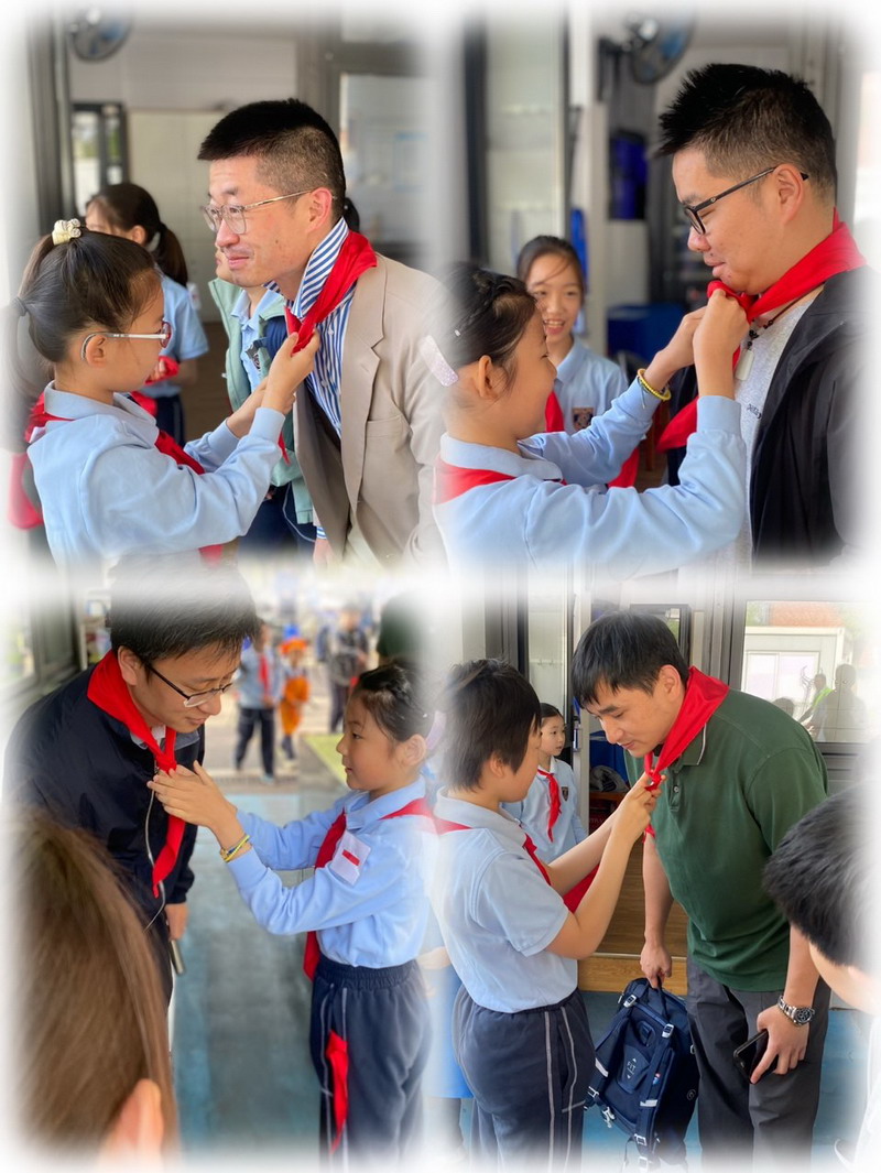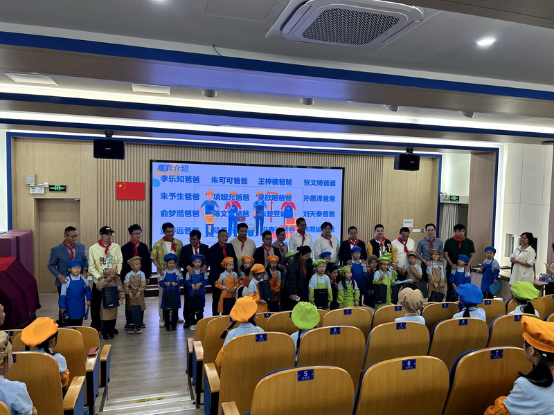 一大早,一年级的爸爸们穿上帅气的衣服,早早地来到学校。少先队员们也特别热情,给每位爸爸戴上红领巾,仪式感满满!这些爸爸们可不是来凑热闹的,他们可是带着“绝活”来的。园丁爸爸、大厨爸爸、工程师爸爸、DT爸爸齐聚一堂,就像是一个“超级奶爸天团”,要给孩子们带来一场超有趣的劳动大冒险。