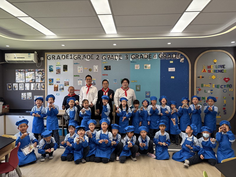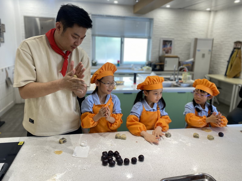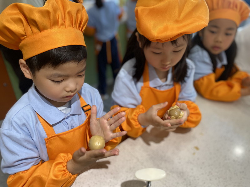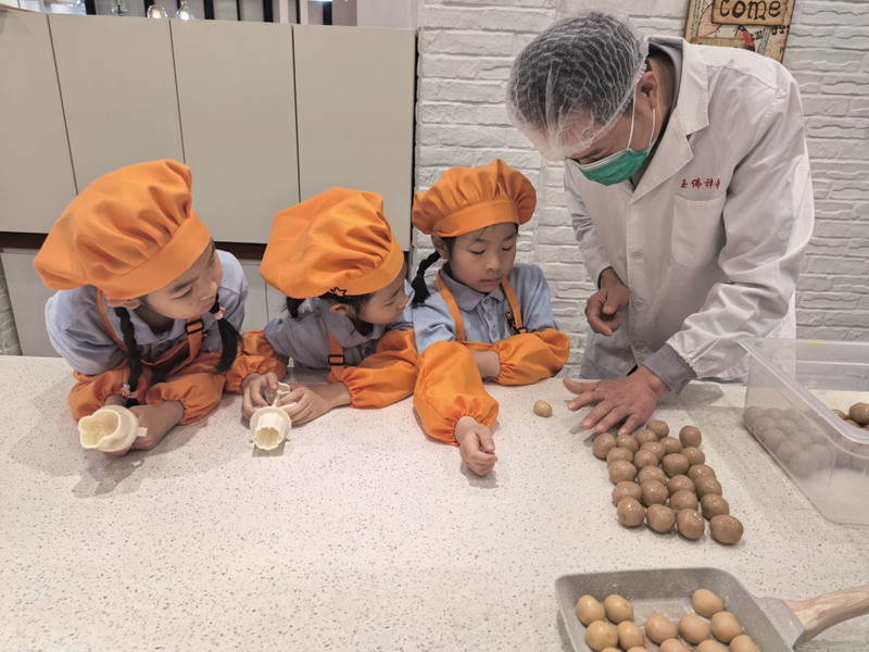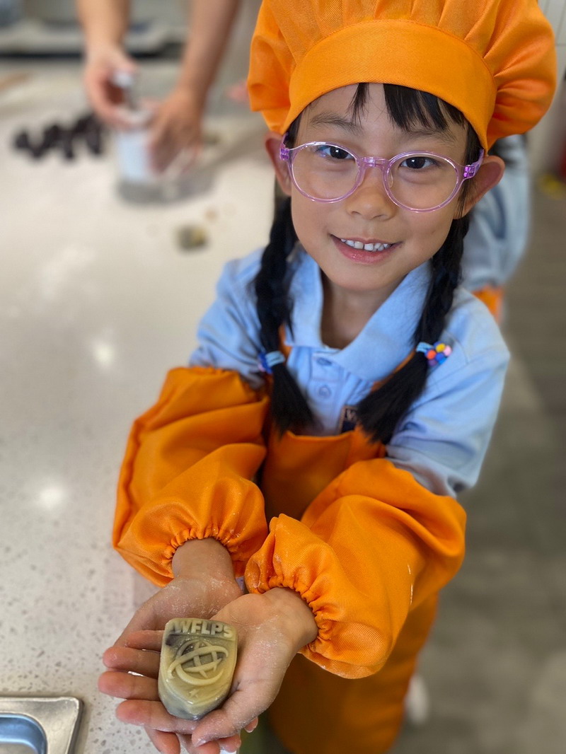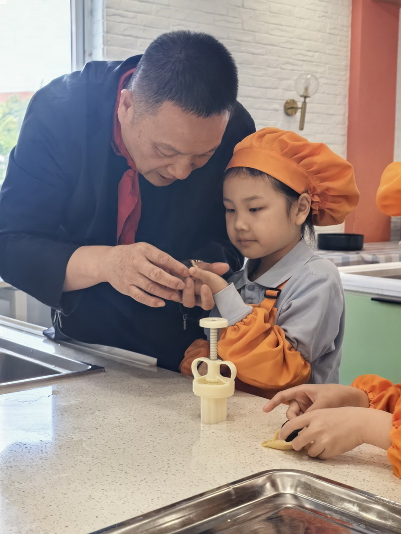 大厨爸爸带着孩子们来到云厨房,教他们做香喷喷的美食。孩子们穿上围裙,变成了“小小厨师”。学得有模有样,揉面、搓面、压制——特质的磨具印着WFL,可自豪啦,“外面买不到哦”。孩子们尝着自己做的美食,脸上洋溢着满满的喜悦。