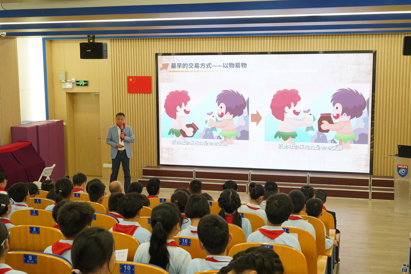 开幕式后,于爸爸为同学们带来一场精彩的财商讲座,他从货币起源,贸易发展等方面深入浅出地向同学们普及金融知识,也为之后的财商课程拉开了序幕。