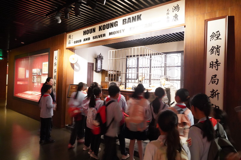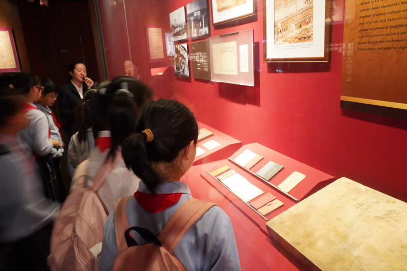 下午,同学们参观了上海市银行博物馆,这是目前国内馆藏最丰富,珍贵文物最多的金融行业博物馆。同学们大致了解了“典当,存折,股票,兑换”等名词,一窥百年民族金融的变迁和中国经济的沧桑巨变。