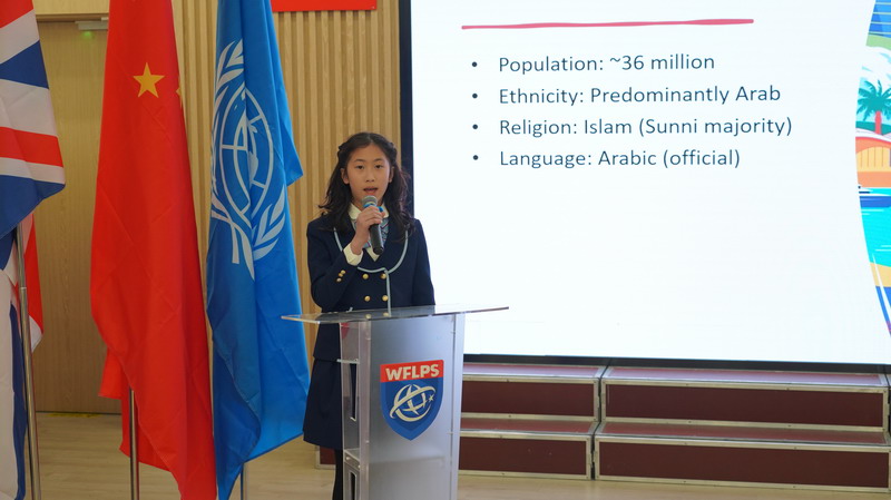 在Country research环节,同学们化身为 “国家研究者”,开启了对不同国家的深度探索之旅。他们通过查阅海量资料、分析数据,深入了解各个国家在政治、经济、文化等方面的特色与立场。同学们自信满满地走上讲台,将研究成果清晰地呈现给大家。从欧洲国家的福利体系,到亚洲国家的传统文化传承,从非洲国家的发展困境,到美洲国家的科技创新,每一个展示都充满了深度与洞见,为后续模联会议中的角色代入与议题探讨奠定了坚实基础。