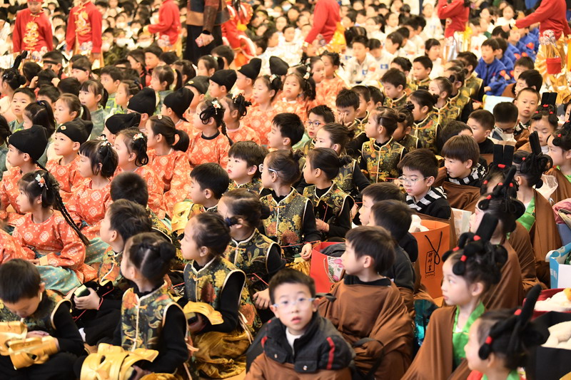 一年级的展厅里,陶艺、造纸等古代技艺不再是史册中的墨香剪影。而是三千年光阴里,工匠的智慧与今日童心的温柔相拥。这微小的互动,宛如一扇窗,推开了华夏文明厚重的门扉。