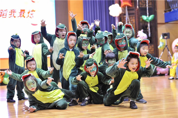 "小动物"们欢聚在一起,进行了一场大联欢,他们在"俳句我最棒"中集体朗诵了和动物有关的俳句;在"走秀我最美"中,他们穿上了华丽的小动物服饰,表演起了走秀;在"chants我爱唱"中,孩子们集体唱起了英语儿歌;在"运动我最强"中,他们踏着音乐的节奏跳起了欢乐蹦蹦跳。此外,在动感的节奏中,他们憨态可掬的恐龙舞引得全场掌声连连。