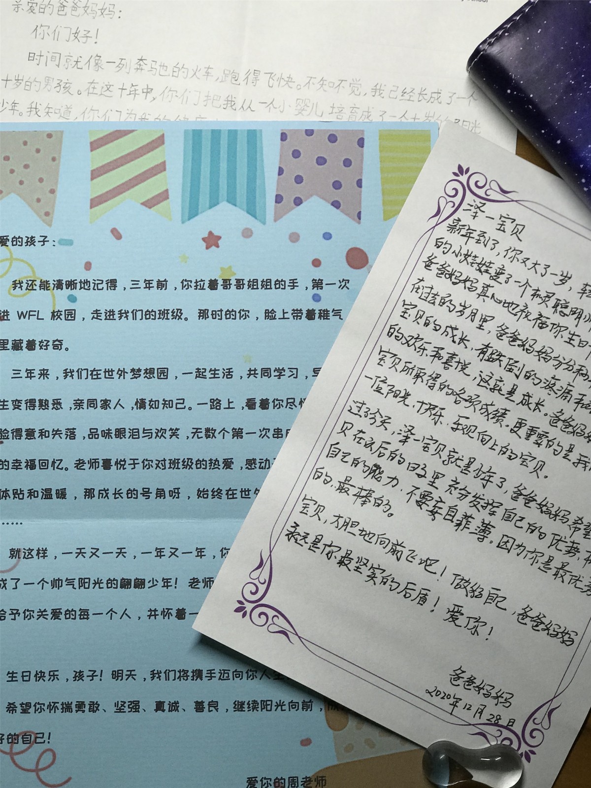 Every student wrote a letter with love and gratitude. Thiugh the handwriting is not perfect enough, they are thankful for the 10-year bringing up. Every word they wrote is touching to their parents.