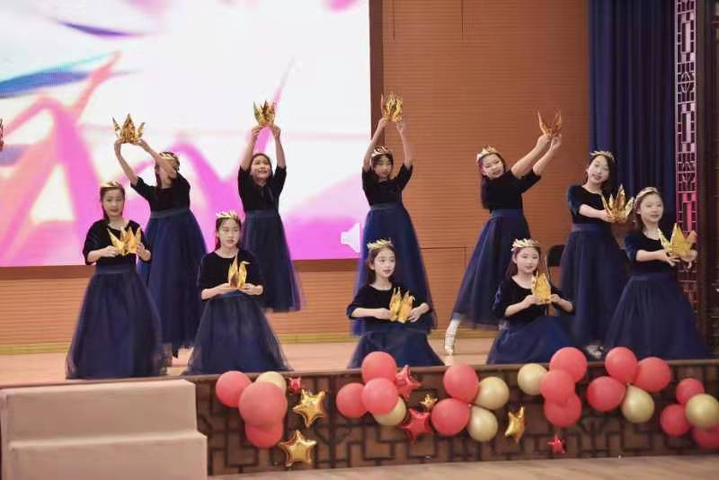 随后,孩子们通过舞蹈“千鹤飞翔”表达了对生活的感恩之心,愿这一只只小纸鹤,带着孩子们的希望和梦想,越飞越高,飞向希望的彼岸。