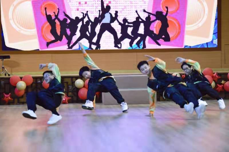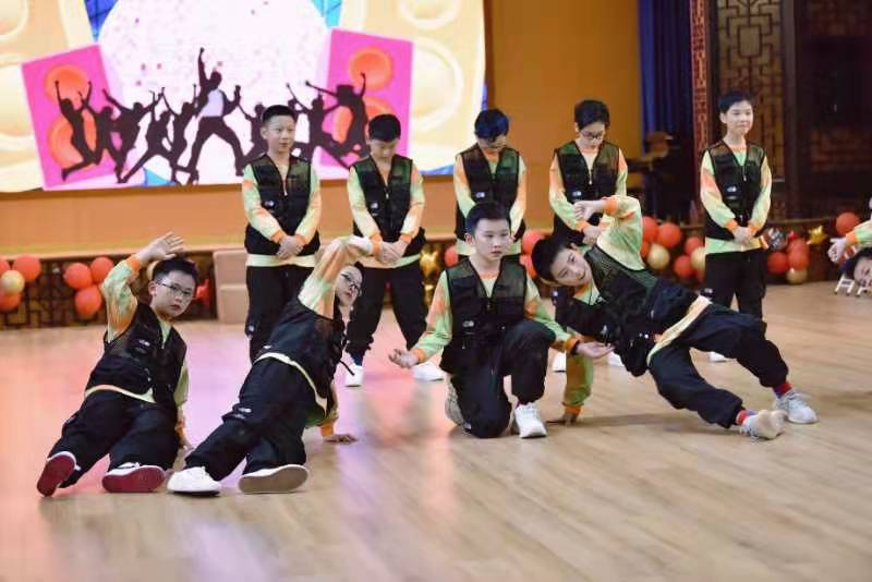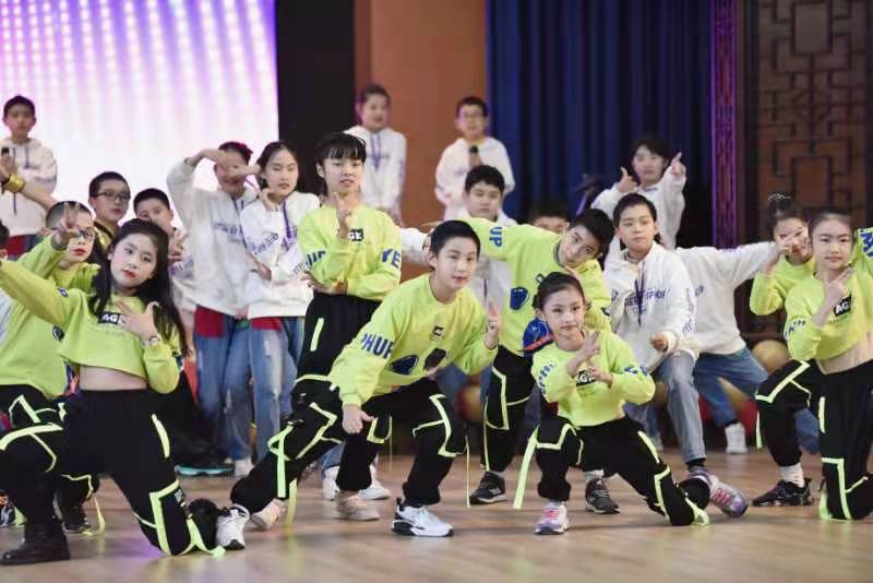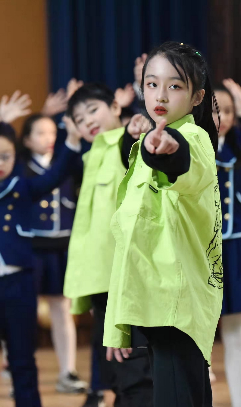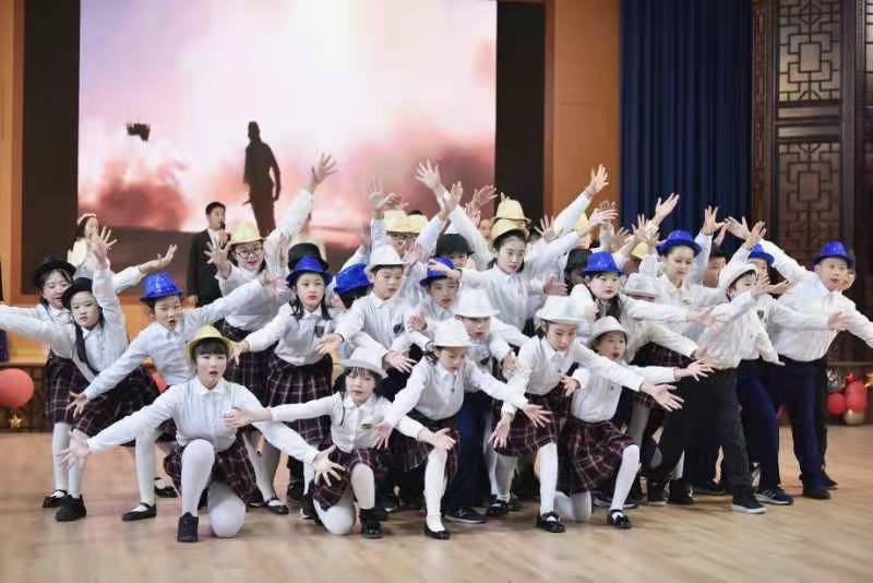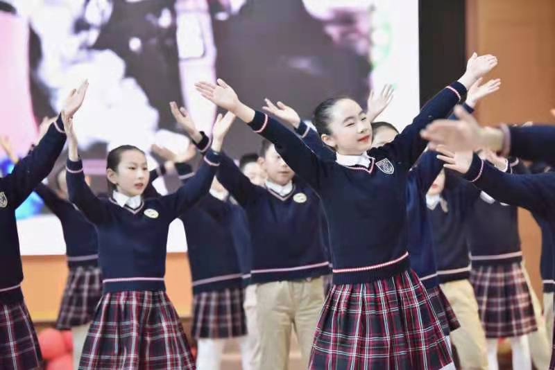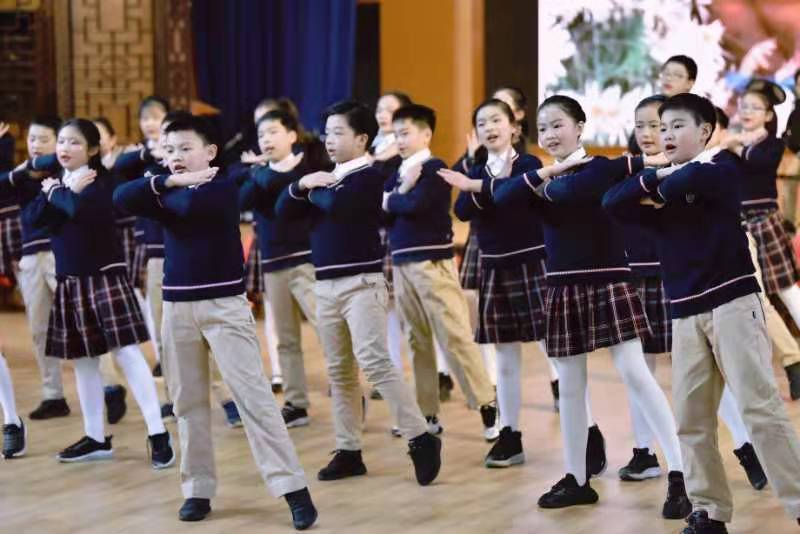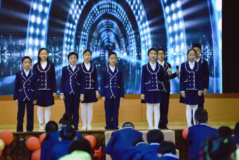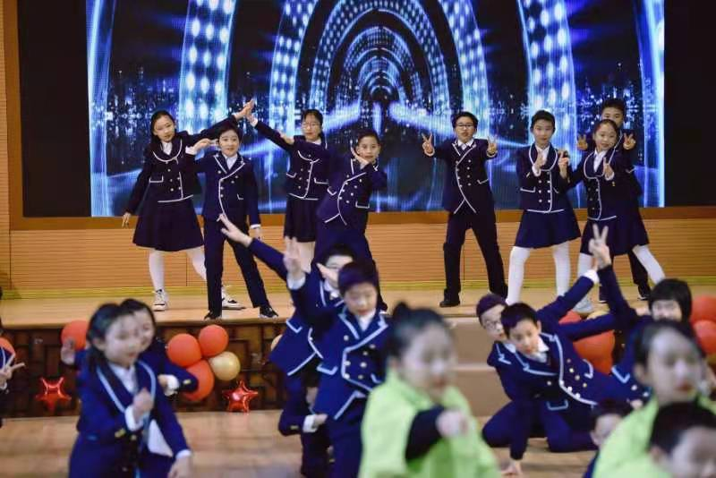 孩子们接着载歌载舞,用一首首英语歌曲串烧的形式展示自己的风采,描绘着五彩缤纷的校园生活。