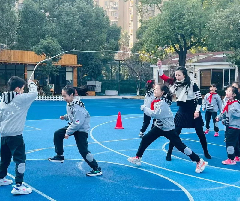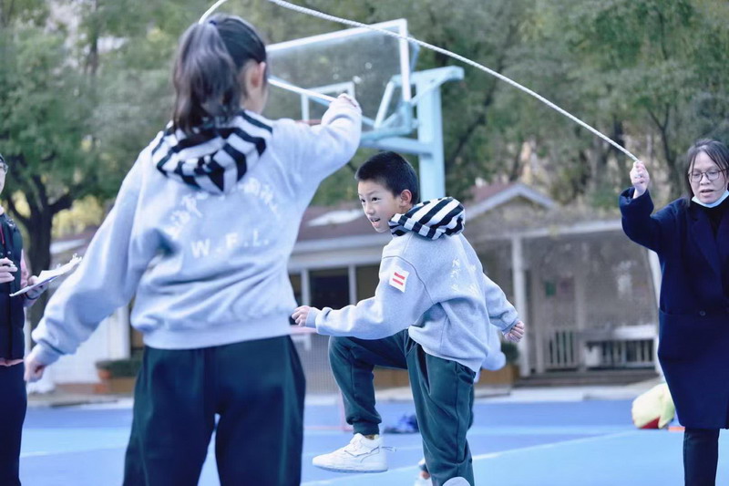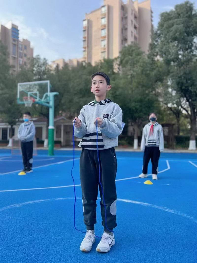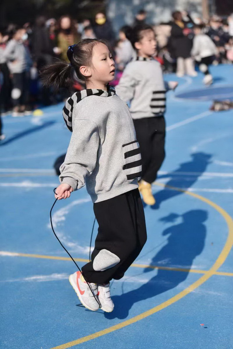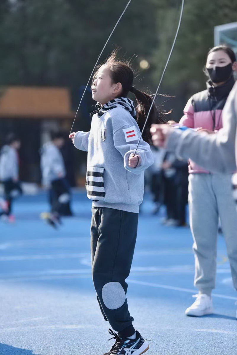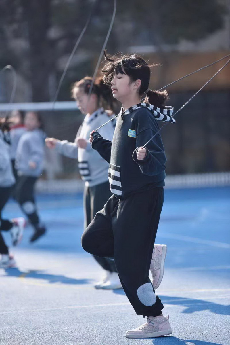 听!哨音一响,只见一根根短绳不断飞舞着,像一个个跳动的音符。同学们身姿矫健演绎着追求极速的决心,激发着他们挑战极限的精神。