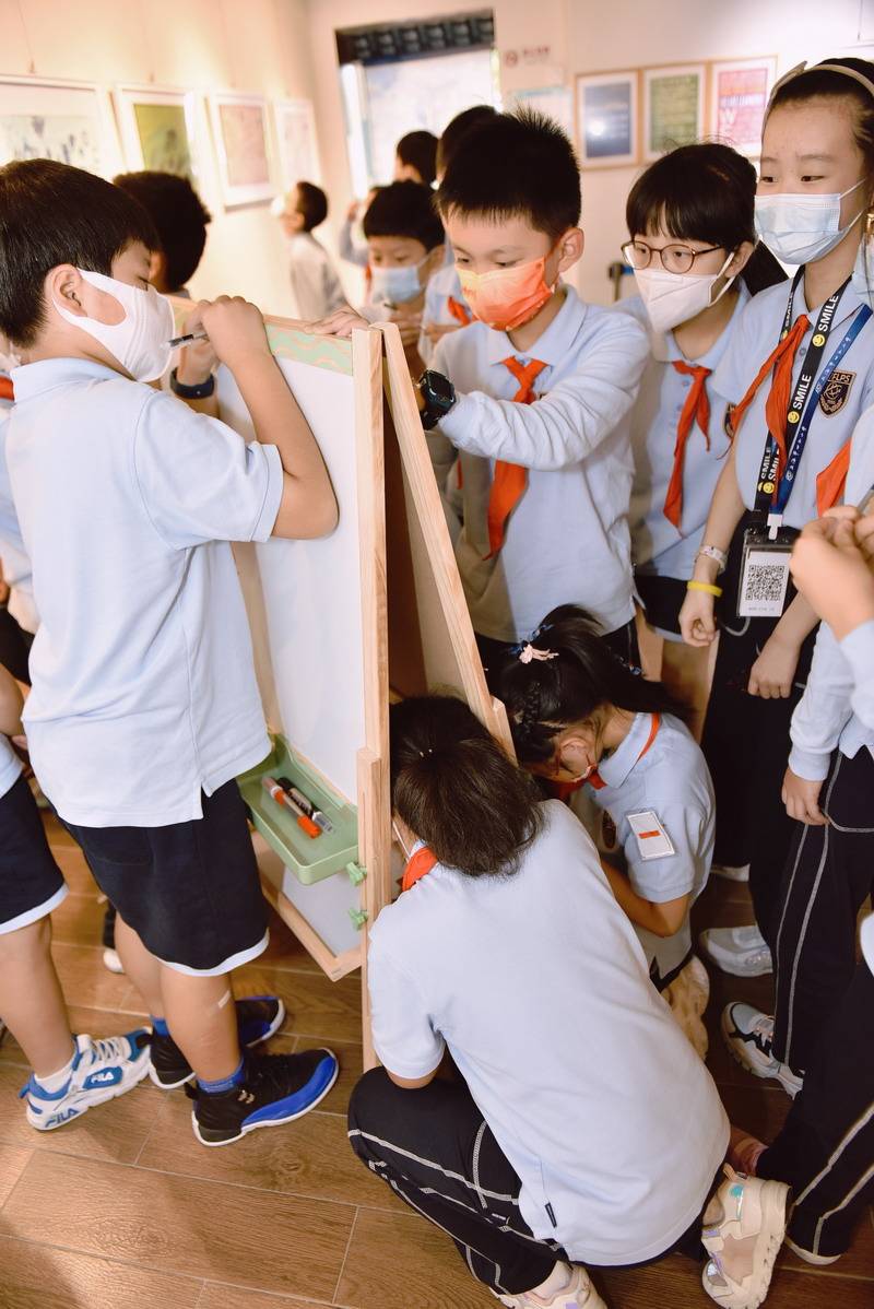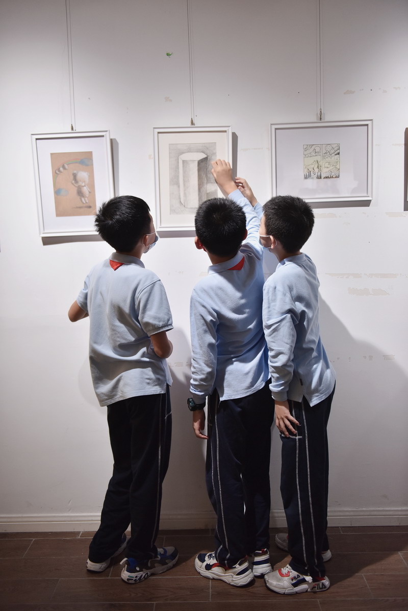 确实,这场画展不止期盼已久,而且非常特别。这是秀空间开馆以来,第一对由亲姐弟带来的跨校区巡回展出。姐姐是来自境内部五年级的王妍昕,弟弟王嘉隆就读于双语部四年级。他俩不止校区不同,性格也完全不同,姐姐腼腆内向,弟弟活泼好动。所以,他们的绘画风格也各有特色。张弛有度的线描画、惟妙惟肖的彩铅画、五彩缤纷的水粉画……作品题材、表现形式多种多样。每一幅图画,都是他们童真的流露;每一次创作,都是他们快乐的体验。给大家带了丰富多彩的视觉享受。