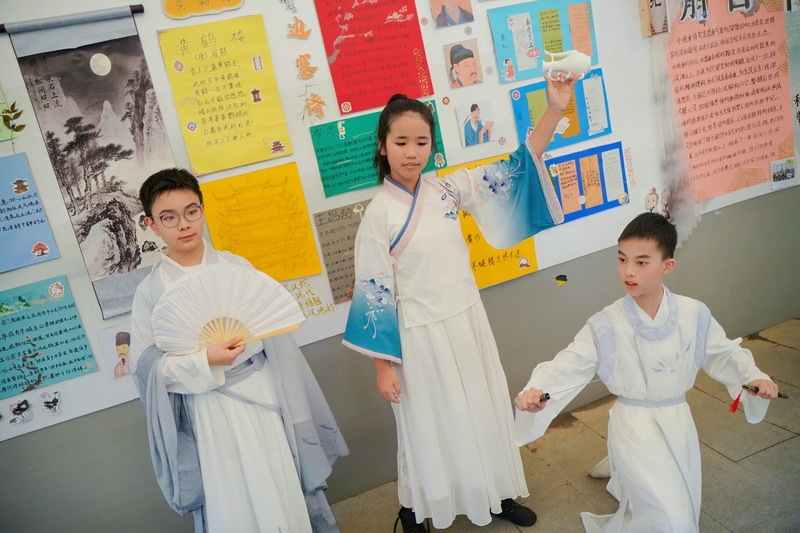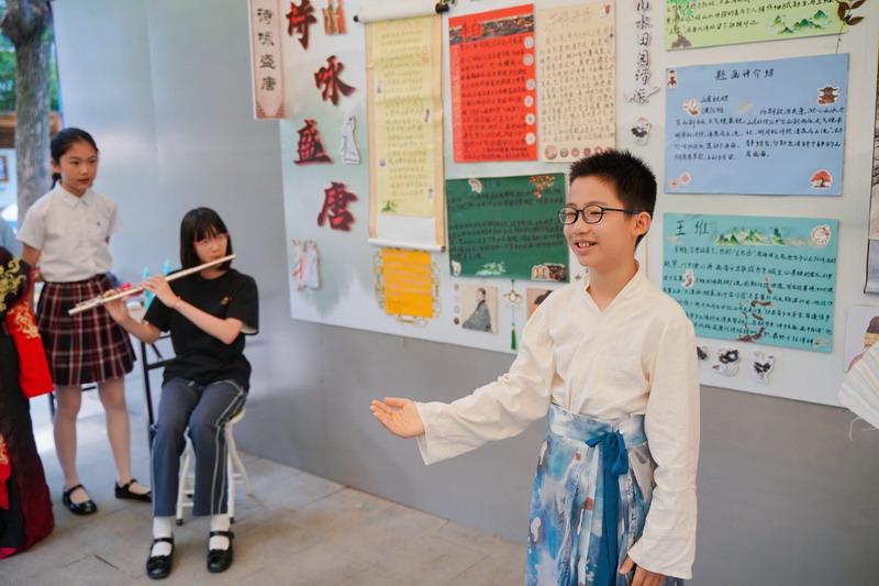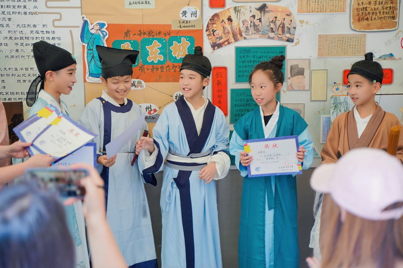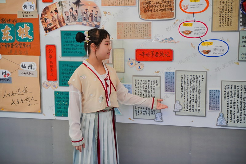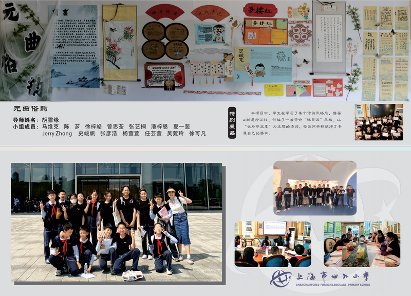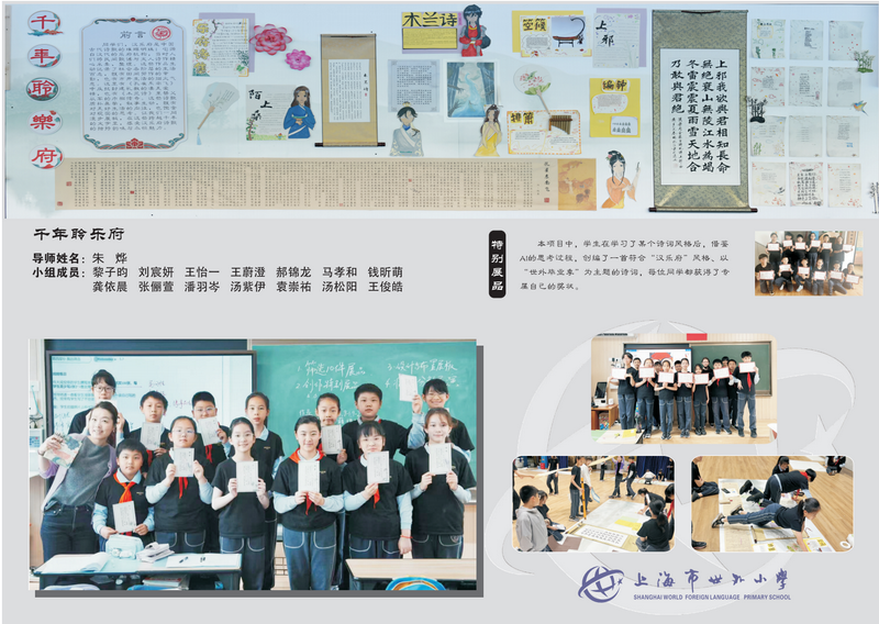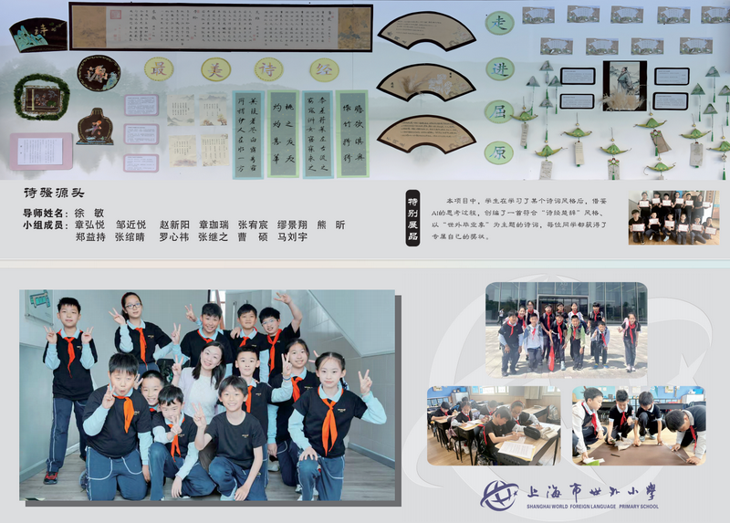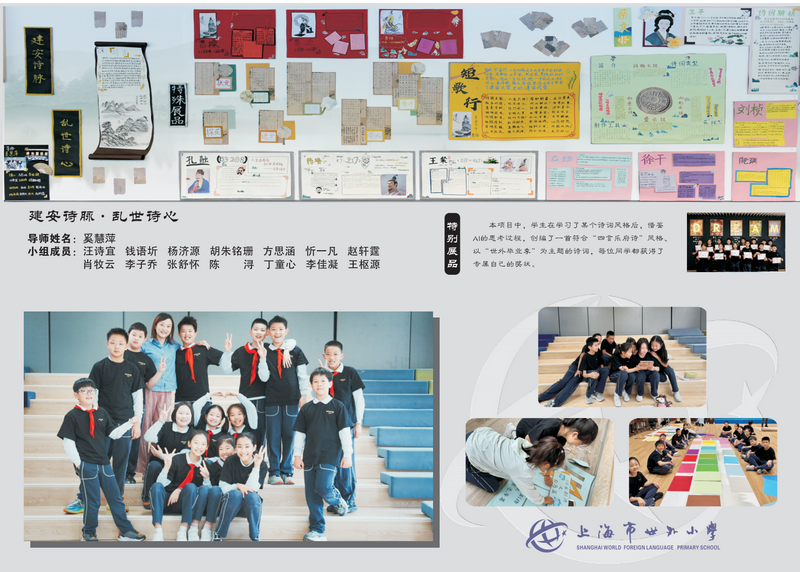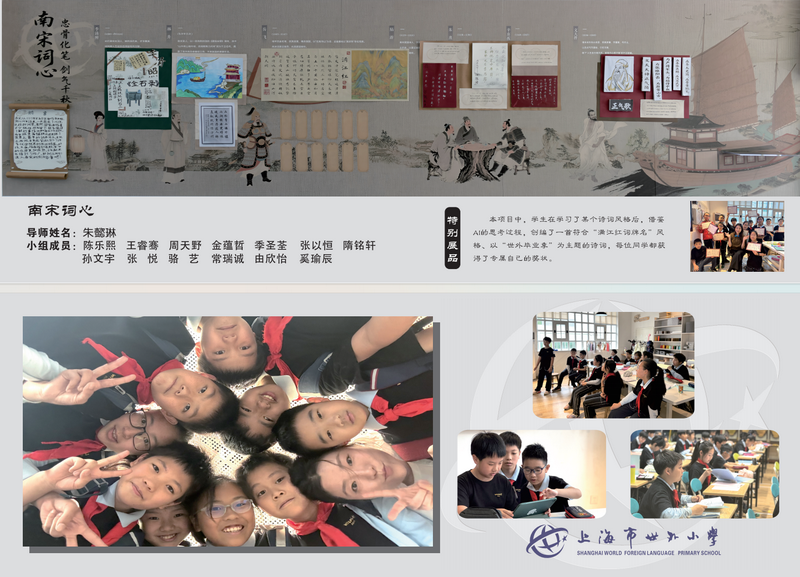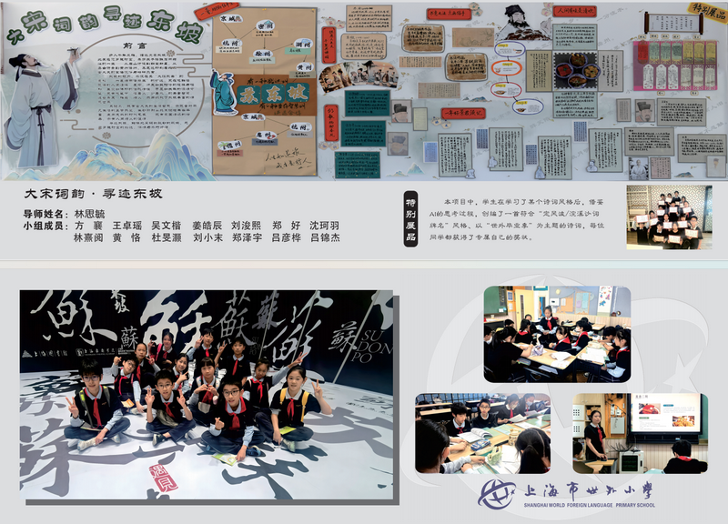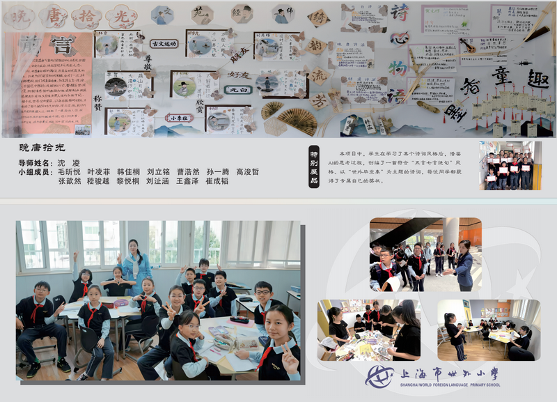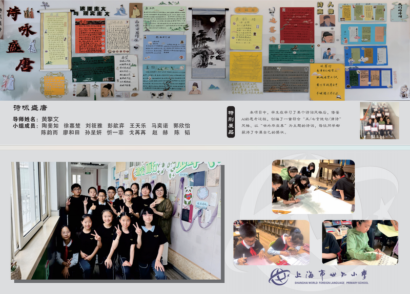 在此跨学科项目中,学生经过独立探究与小组合作,学习某个诗词的流派特点、朗读诗词、尝试创作诗词、并筛选展品、制作展板,最终交出了一份完美的毕业答卷。