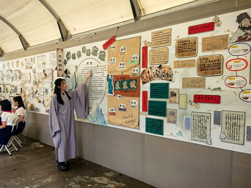 此次毕业展的主题同样也是《诗词华章》,境内部13位导师带领169名毕业生,共同搭建起一个集众多朝代的诗词展览馆。