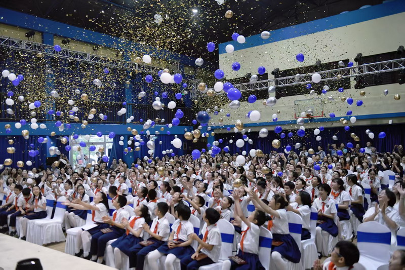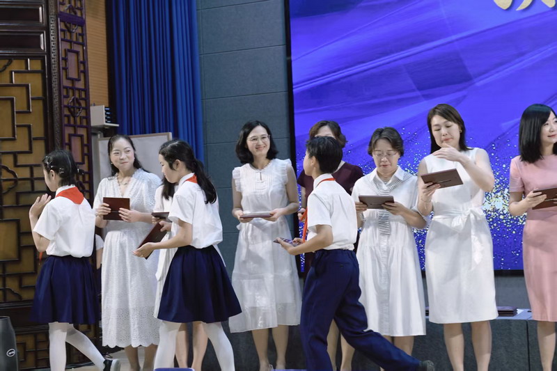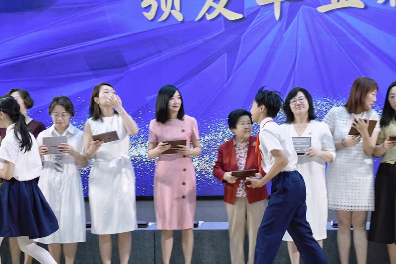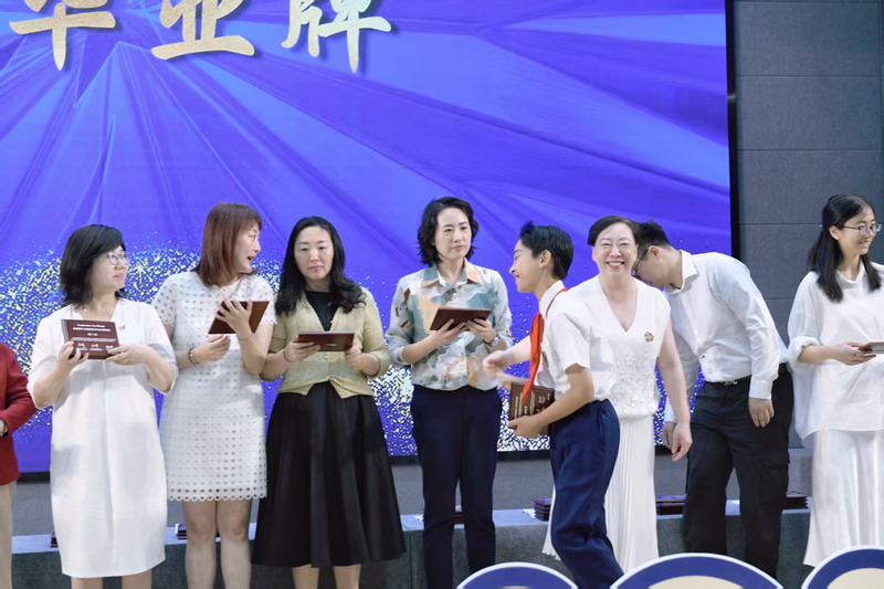 在庄重的毕业牌颁发环节,5位校长和11位老师有序为同学们颁发毕业纪念牌,见证这一重要时刻。