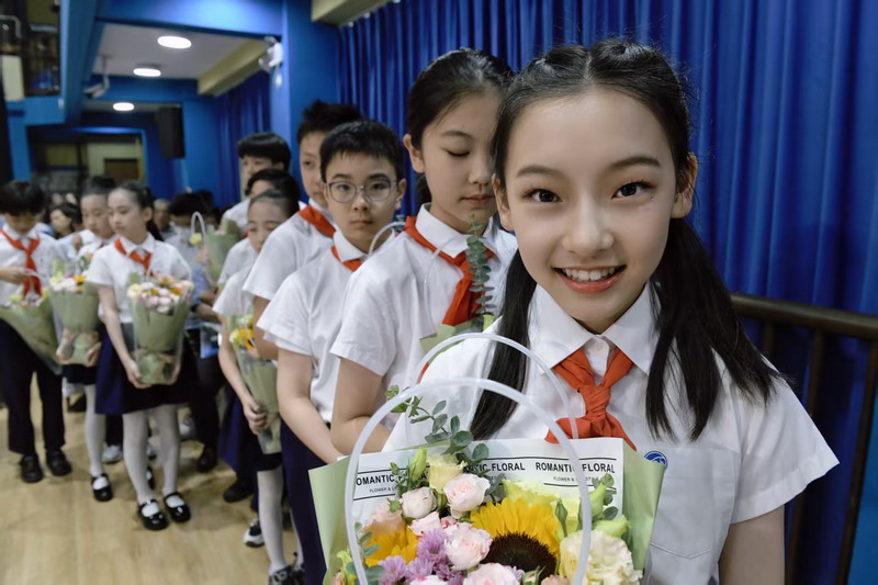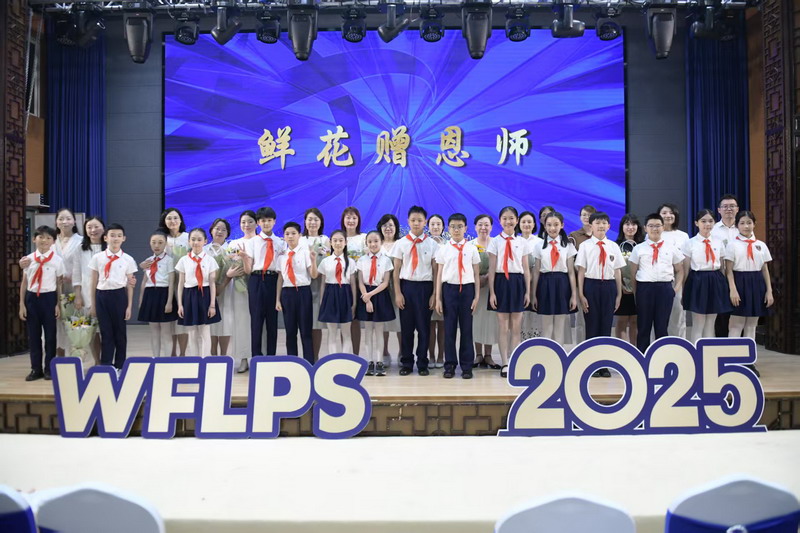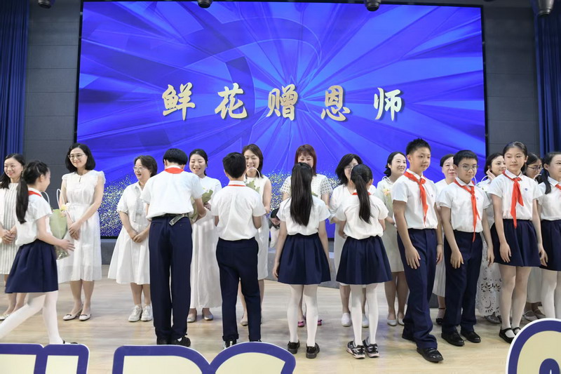 同学们为课程组导师及五年级组16位老师献花,以鲜花表达最诚挚的谢意。