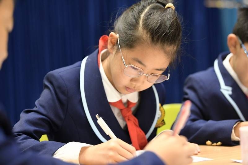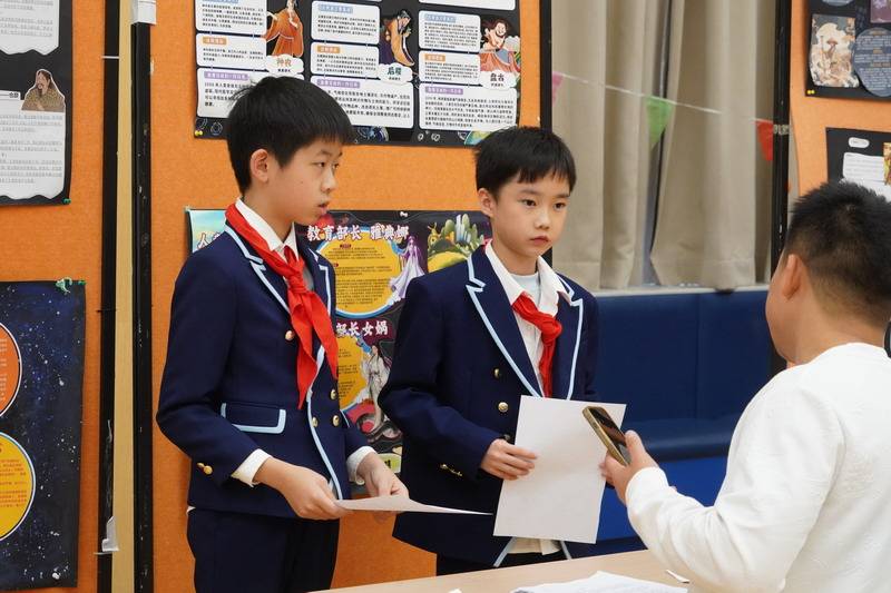 整个学习过程历时一个多月,层层递进、环环相扣,完整呈现了“阅读输入—思考内化—创作输出”的学习路径。活动之初,在语文老师们的引导下,学生们化身“首席人才资源官(CHO)”,开启了海量阅读之旅。他们不仅精读《盘古开天地》《精卫填海》等课文,从文字间触摸英雄的人物精神品质,而且,他们海量阅读《中国古代神话》《希腊神话》等精彩读物,探究中希神话的起源与特点——从盘古劈开混沌的壮举到女娲补天的悲悯,从普罗米修斯盗火的勇敢到雅典娜赐福的智慧,不同文化背景下的英雄故事在学生心中碰撞交融。在这一过程中,学生不再是被动的知识接收者,而是主动的探究者,他们在思辨中深化对“英雄”的理解,为后续的“选聘工作”积累了扎实的素材。