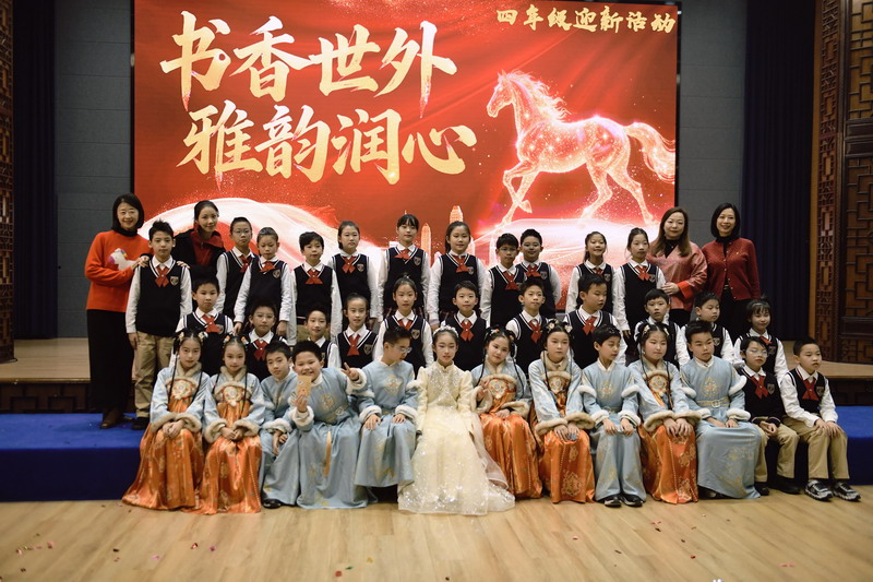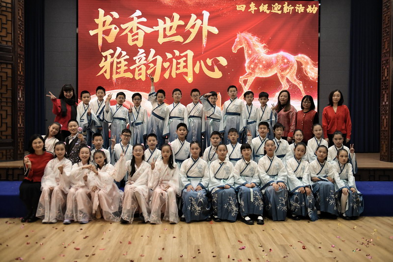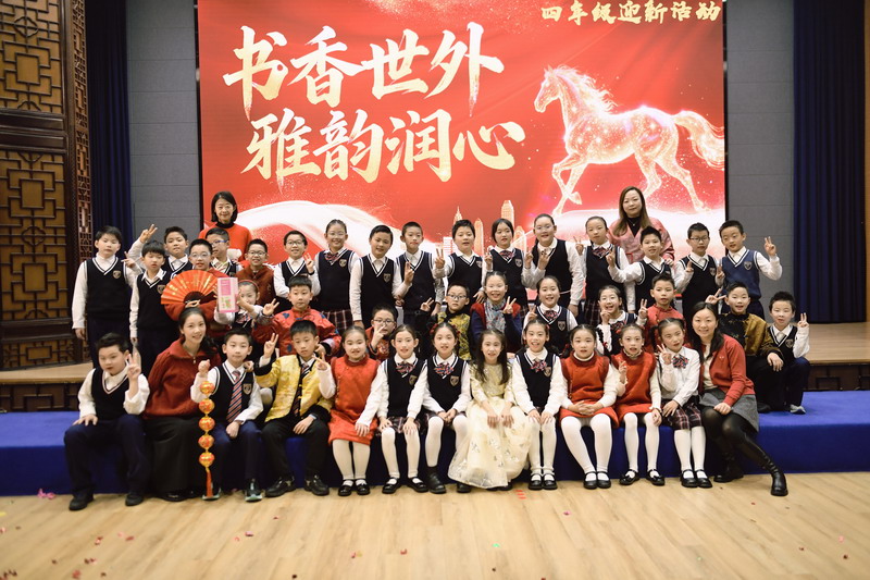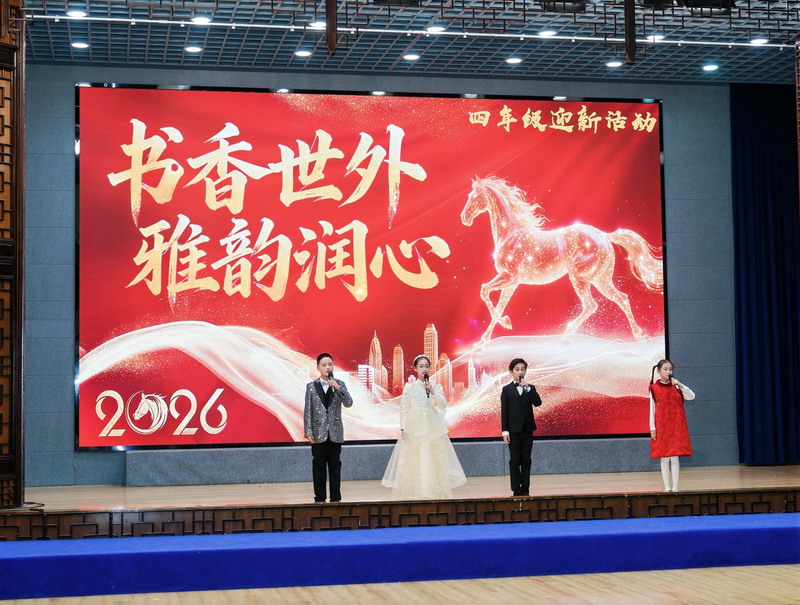 岁末将至,新岁将启。在这辞旧迎新的美好时刻,一场以“书香世外 雅韵润心”为主题的四年级迎新活动温情上演。全体师生齐聚一堂,以诗词传情、以歌舞抒意、以游戏会友,在欢声笑语中定格温暖瞬间,共同许下对新年的美好期盼。