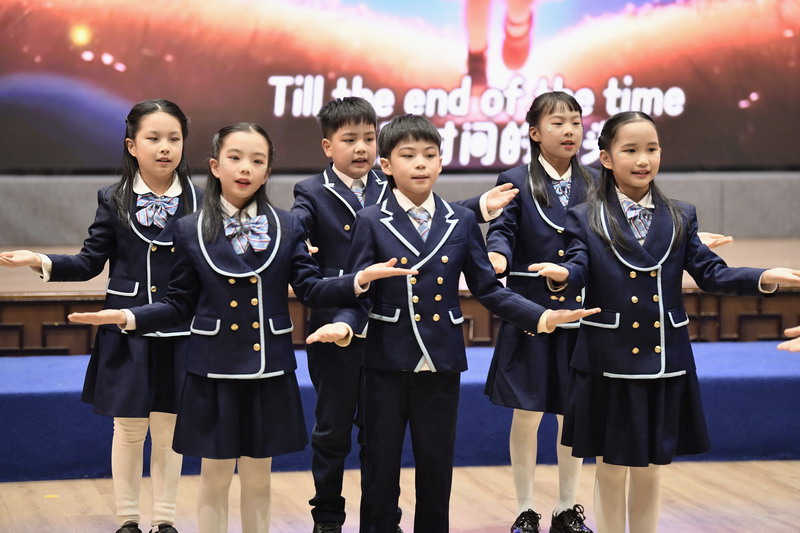 歌声传情,心意流淌。同学们联袂献上英语歌曲《Let It Grow》《Proud of You》,清澈的嗓音中满载阳光与希望,表达了对校园与师长的深深感恩。
