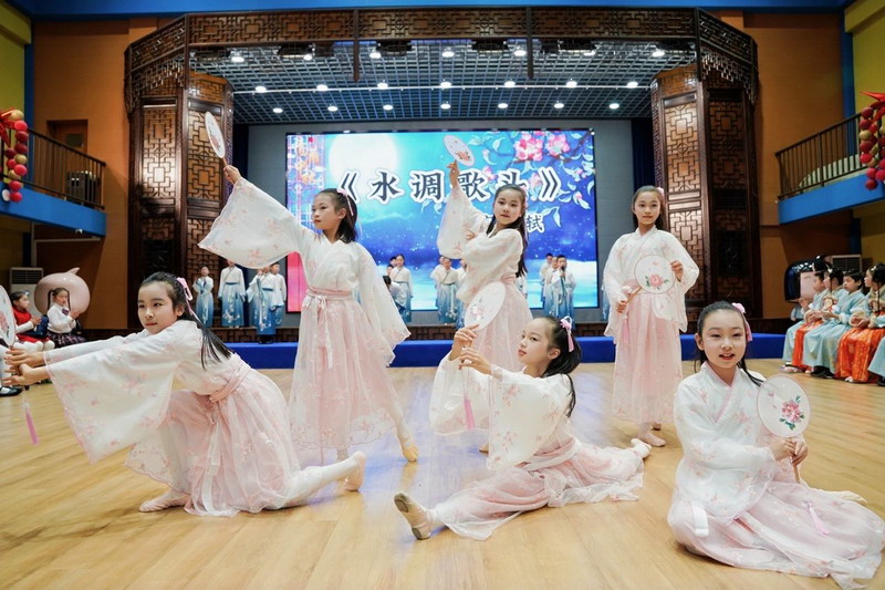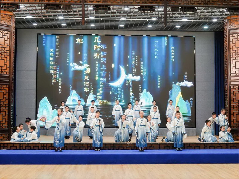 四(4)班带来的《水调歌头》深情演绎团圆之美,经典诗词的悠远意境萦绕不绝。
