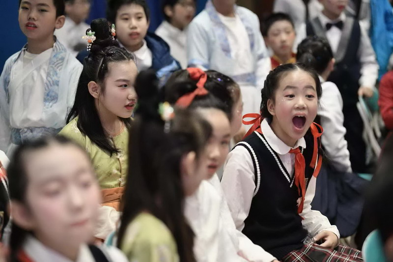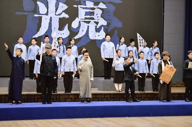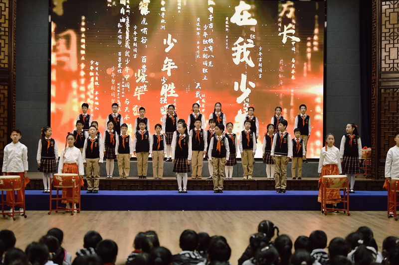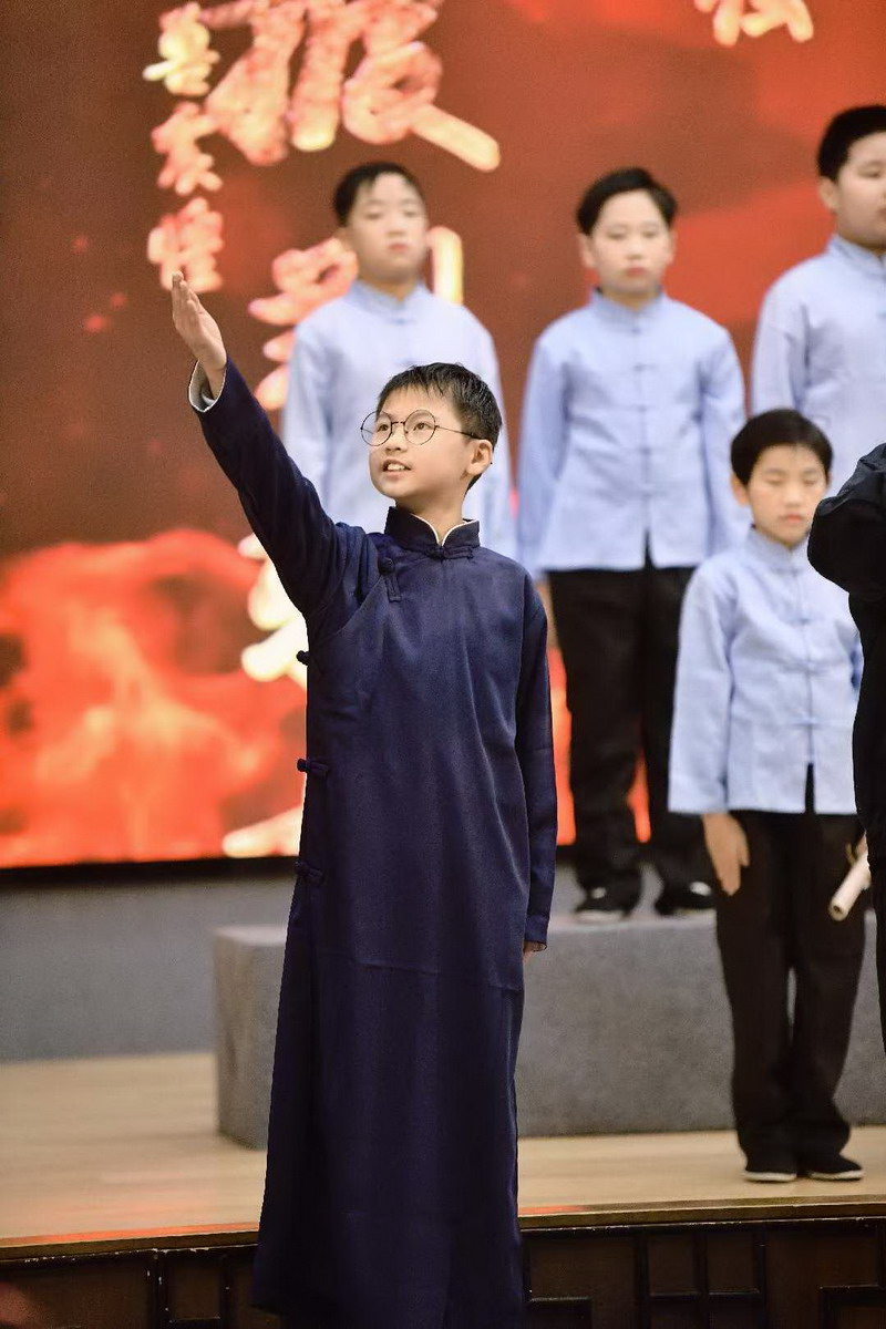 五(3)班的同学们以“时光对话”为核心,融合朗诵、武术、大鼓等多元形式,让古今少年隔空呼应,诠释“少年强则国强”的永恒主题。
