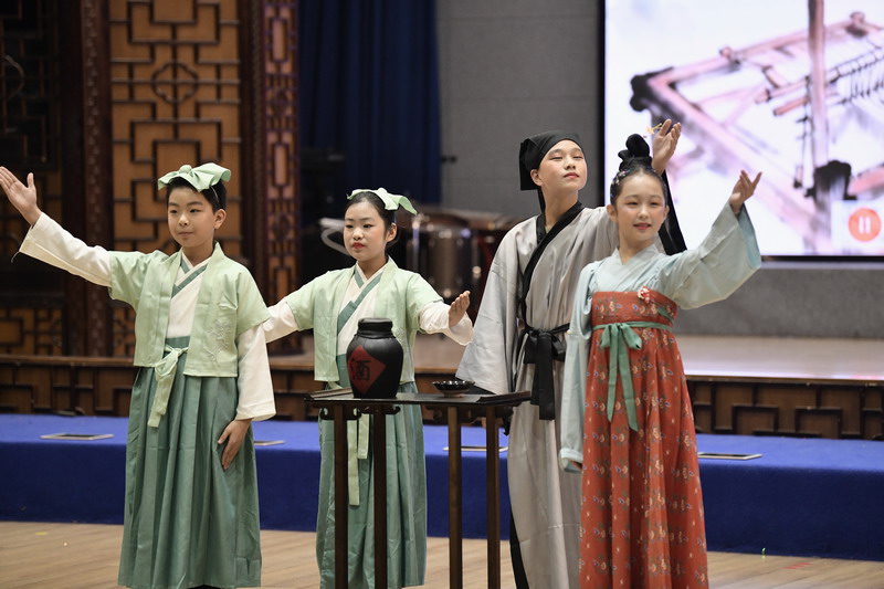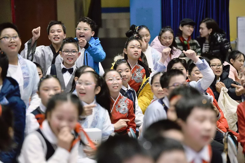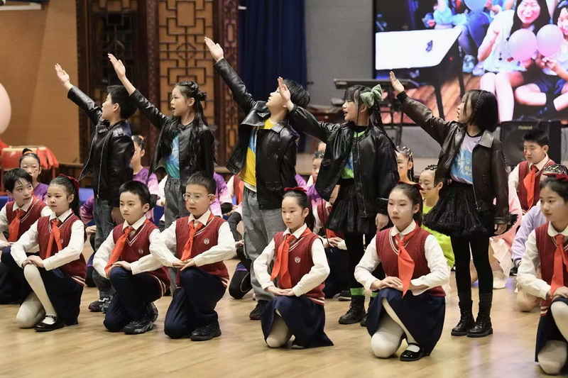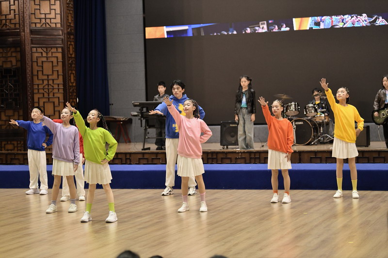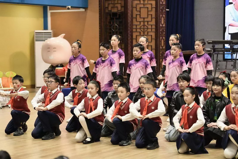 五(4)班的同学们通过情景剧演绎成长之旅,从各执一词到合力攻坚,用齐声高呼与歌舞表演,展现少年同心筑梦的赤诚。