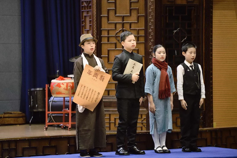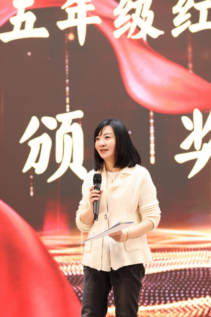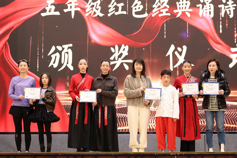 激烈角逐后,张校长上台进行了总结,这场诵诗会是五年级同学们学习“家国情怀”单元后,交出的一份鲜活生动的项目化学习答卷。同学们以多元创意编排诠释经典,字里行间满含真情,让家国情怀在实践中生根发芽。最后,张校长揭晓了本次活动的获奖班级,为这场兼具意义与风采的诵诗会画上了圆满句号。