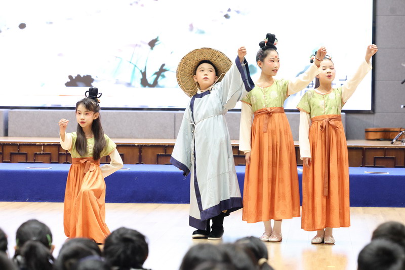 在各班精彩展示落幕之际,诗词吟诵《诗圣归乡》缓缓登场,生动再现了杜甫听闻失地收复、喜极而泣的赤诚,尽显中华诗词中的家国情怀。
