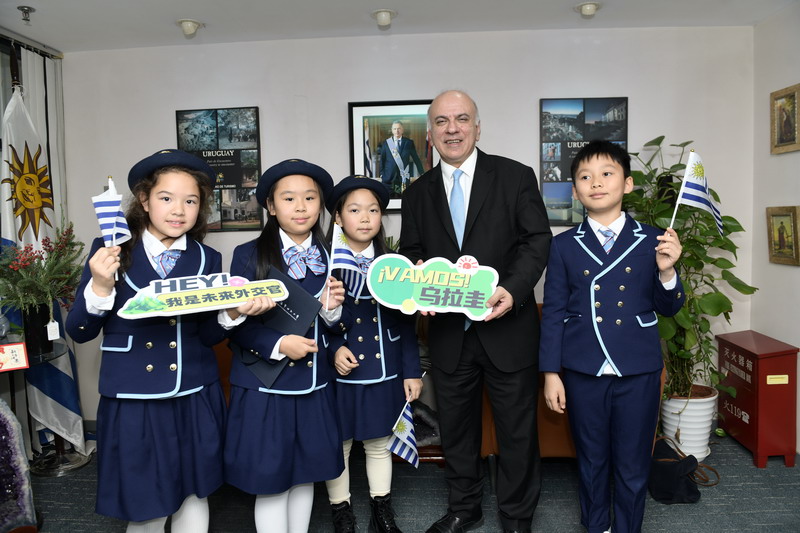 这学期,百瑞彩票国际部的孩子们多了一个新课后社团——西班牙语社团。正是因为这个联结,他们获得了一次特别的邀请:走进乌拉圭东岸共和国驻上海总领事馆,成为一天的“小小外交官”。