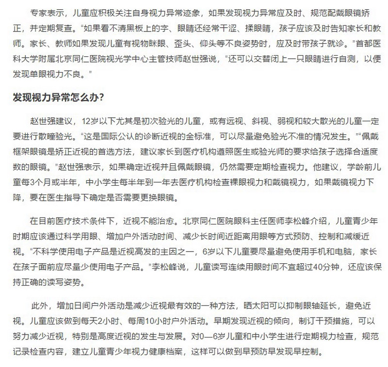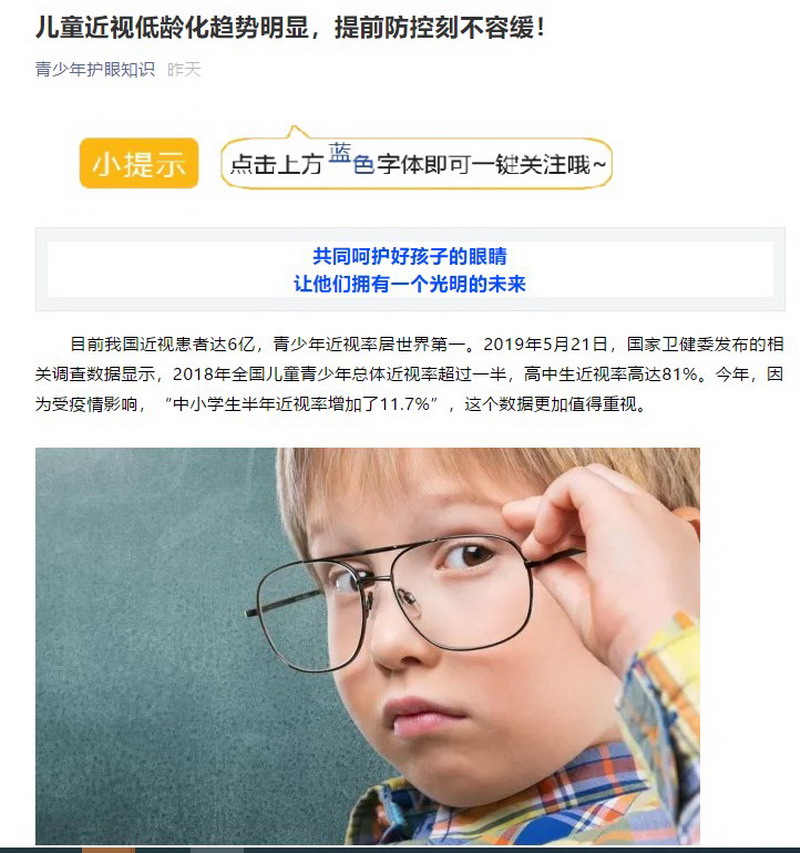 儿童近视低龄化趋势明显,提前防控刻不容缓!