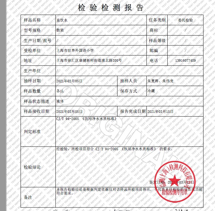 2021年3月水质报告