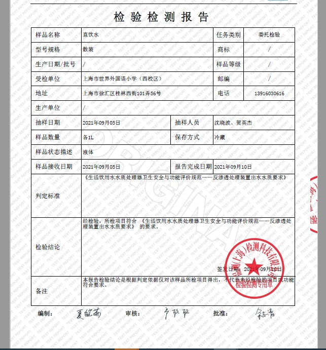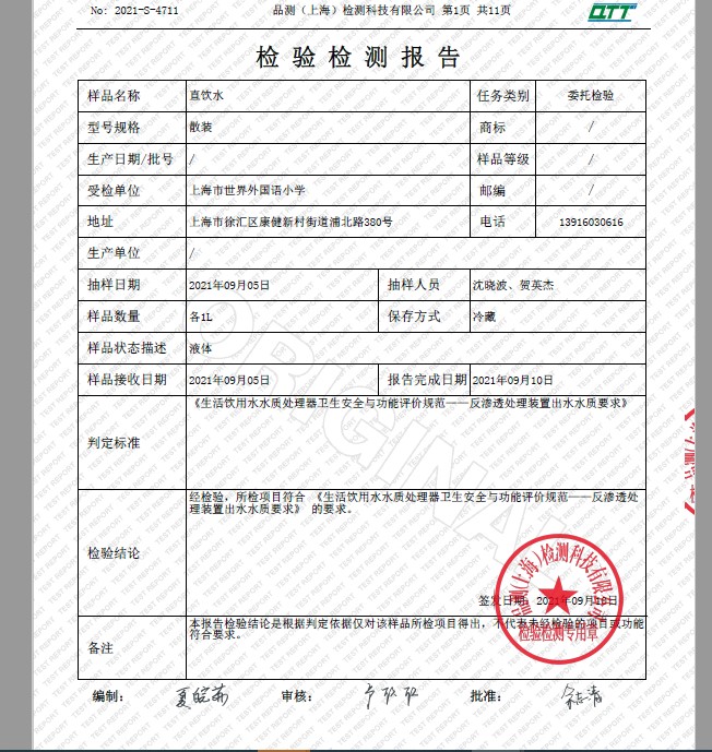 2021年9月水质报告