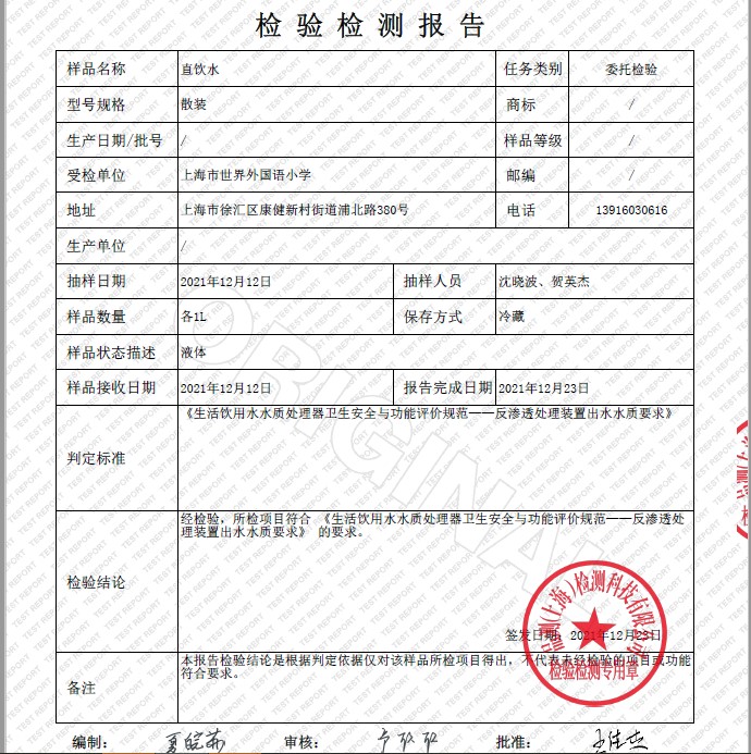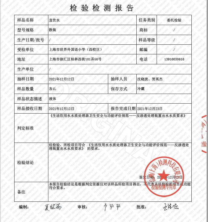 2021年12月水质月检报告