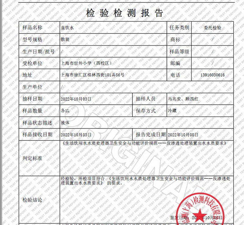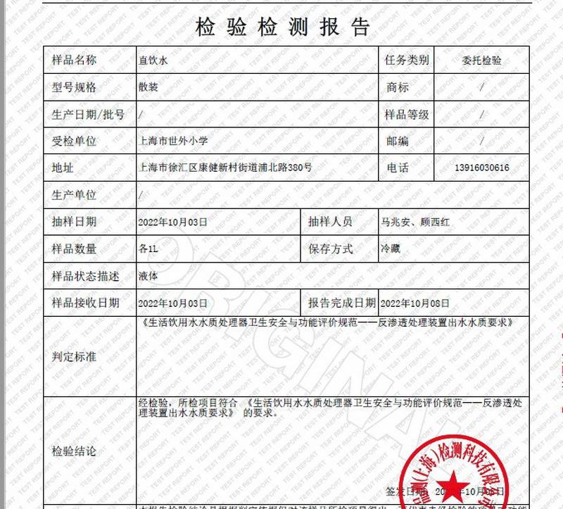 2022年10月水质报告