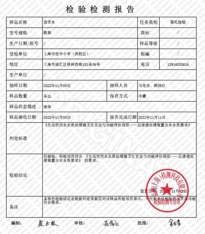 2022年11月水质报告