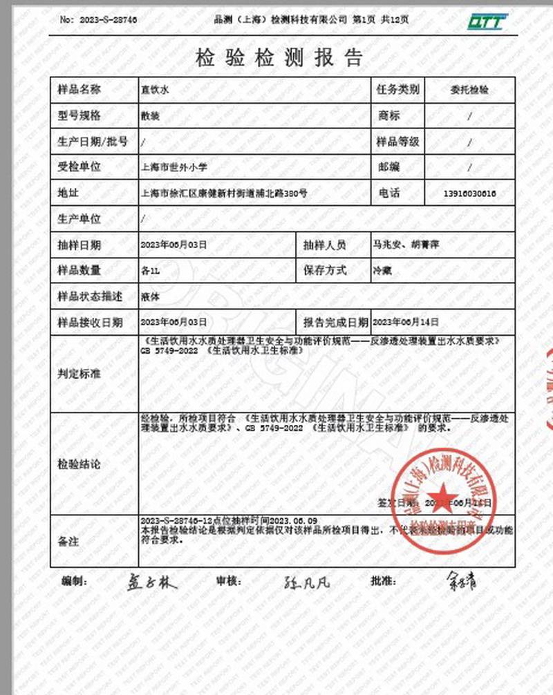 2023年6月水质报告