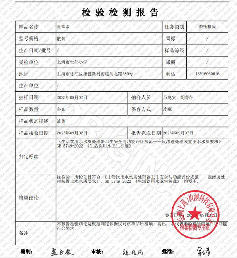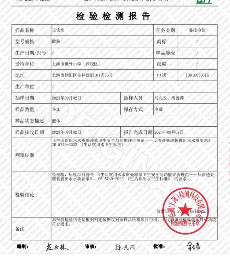 2023年9月水质报告