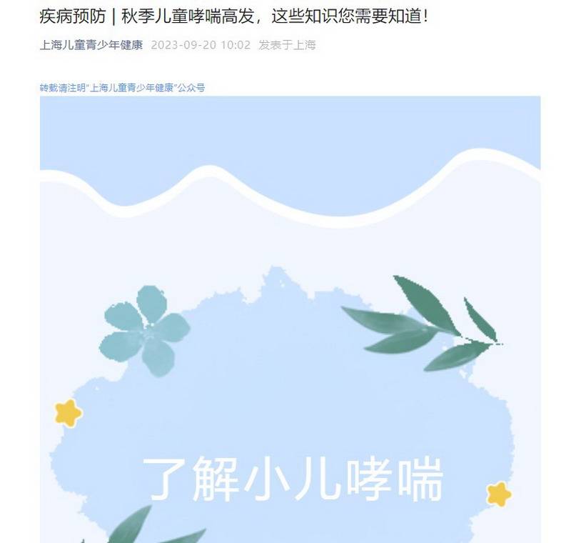 疾病预防 秋季儿童哮喘高发,这些知识您需要知道