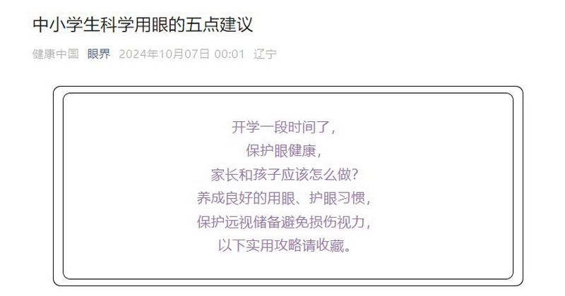 中小学生科学用眼的五点建议