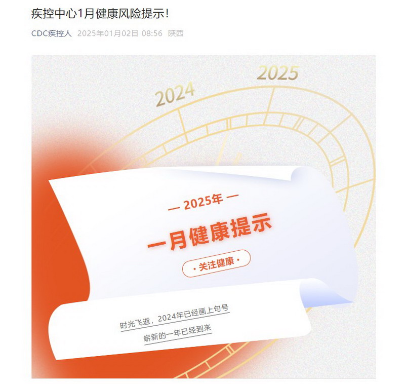 疾控中心1月健康风险提示!