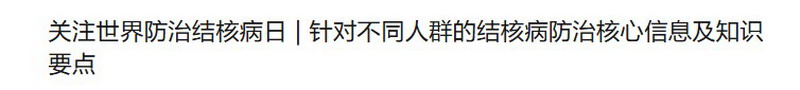 关注世界防治结核病日 针对不同人群的结核病防治核心信息及知识要点