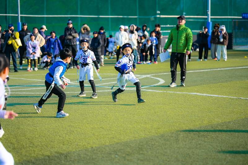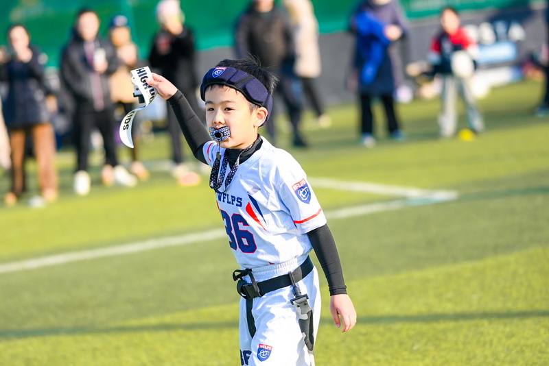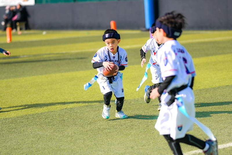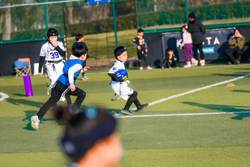 On defense, Sean stood out with his excellent anticipation and awareness. Through accurate flag pulls and quick adjustments in zone defense, he repeatedly shut down the opponent’s advances, playing a key role in securing a victory for the U6 team.