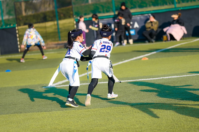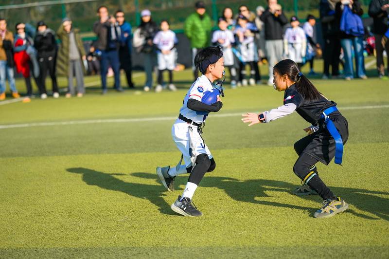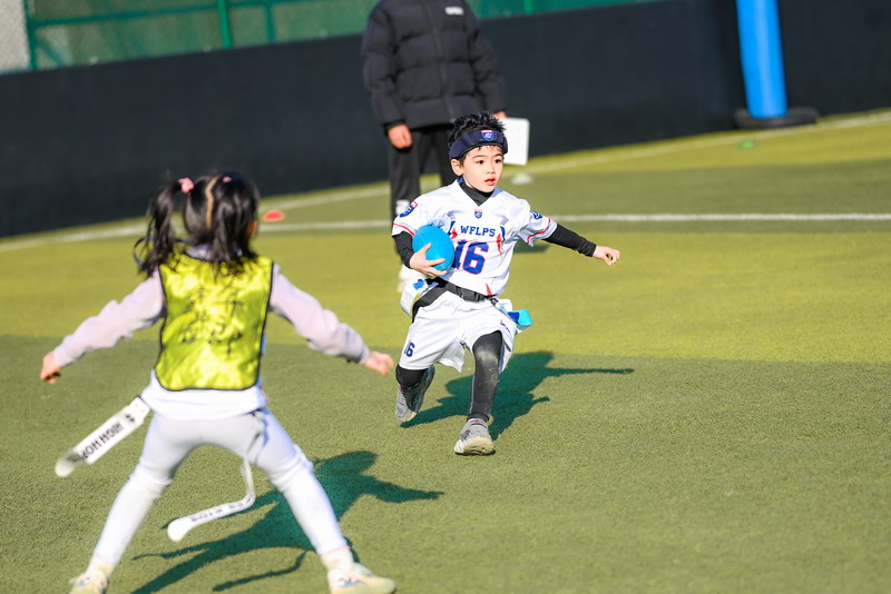 While Pudong Mingzhu Primary School brought years of competition experience and top-three finishes in the Sunshine League, the WFLPS International Division Flag Football Team stepped onto the field as a newly formed squad. The team had completed its first training session only a week before the match.