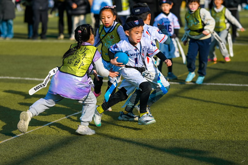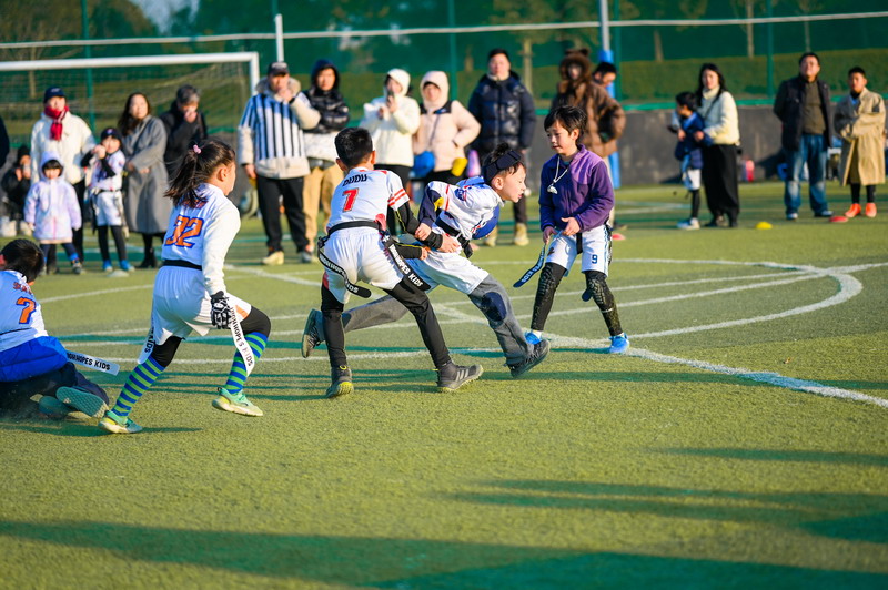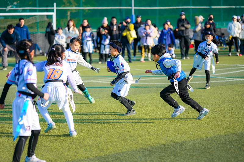 On December 14, the Flag Football Team of the International Division of Shanghai World Foreign Language Primary School (WFLPS) took part in a friendly exchange match against Pudong Mingzhu Primary School. On the green field, young athletes brought passion, courage, and sportsmanship to life, demonstrating their love for the game and the true spirit of competition.