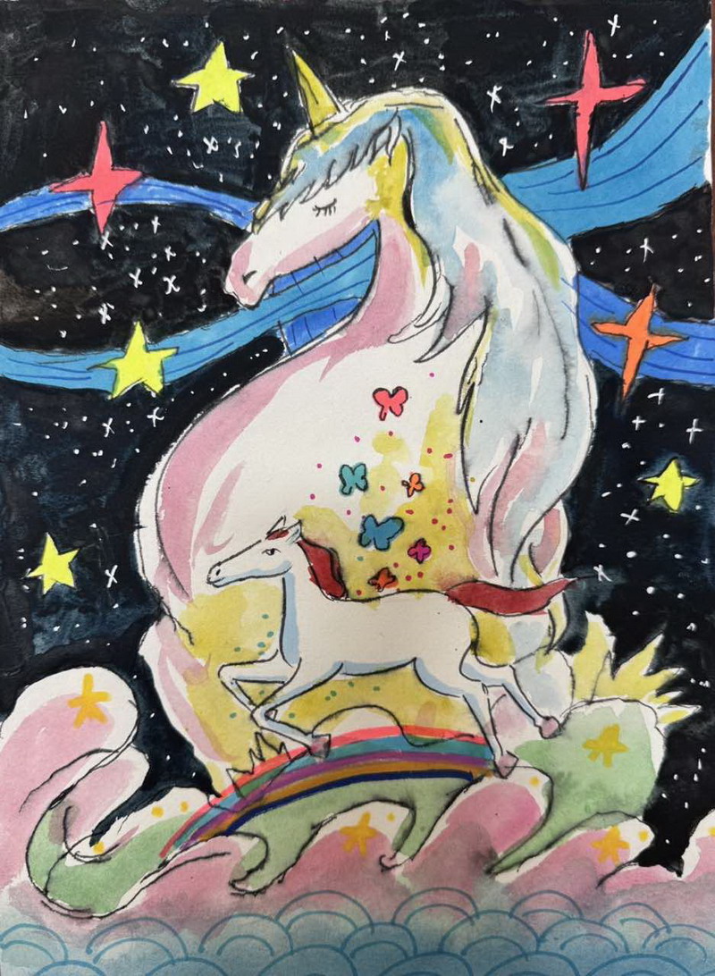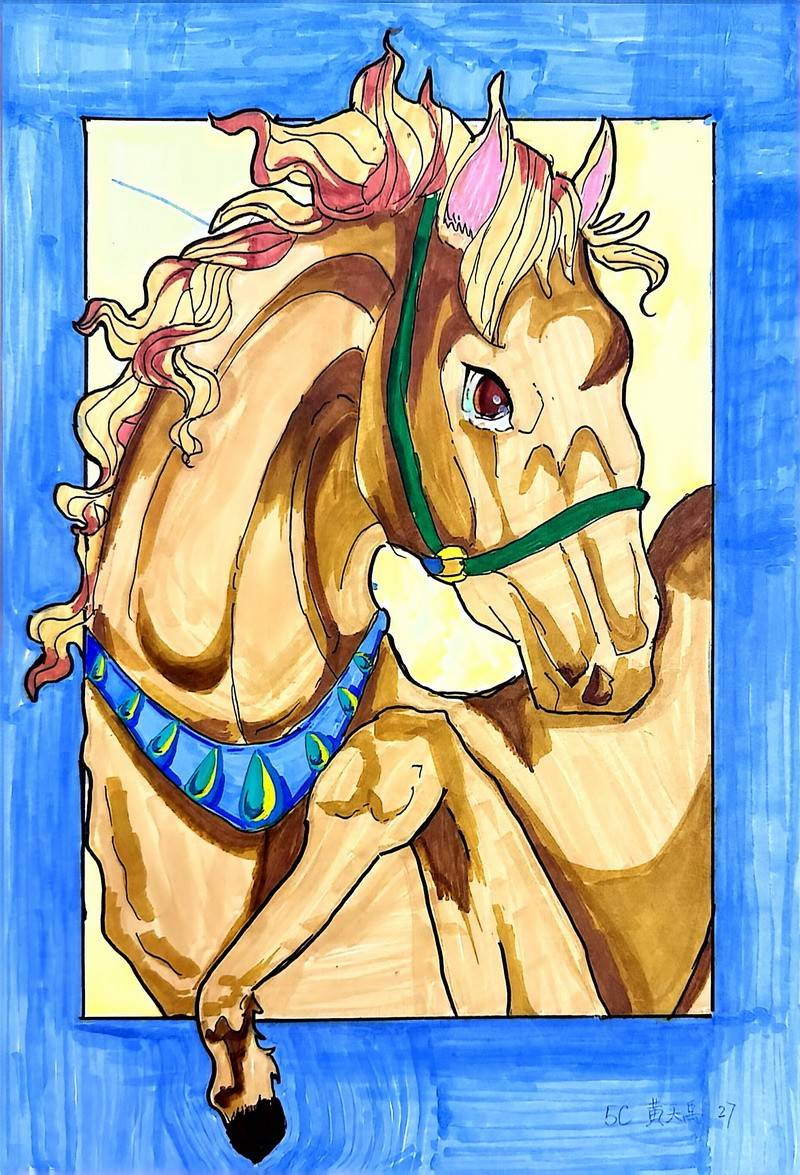 临摹,从来不是简单的“照着画”。它是一种扎实的训练:学会观察比例,理解线条的方向,辨认色彩的层次,体会笔触的节奏;更重要的是,在一次次靠近原作的过程中,孩子们建立起自己的审美标准——知道什么是“像”,什么是“好”,在模仿与练习中,把“马”的形象画得有精神、有温度、有气势。