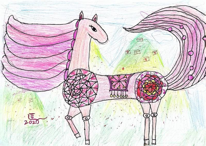 图案马是本次临摹类里很可爱的亮点:同学们以同一造型为基础临摹,但在马身上添画不同图案,让每一匹马都有自己的“皮肤”。