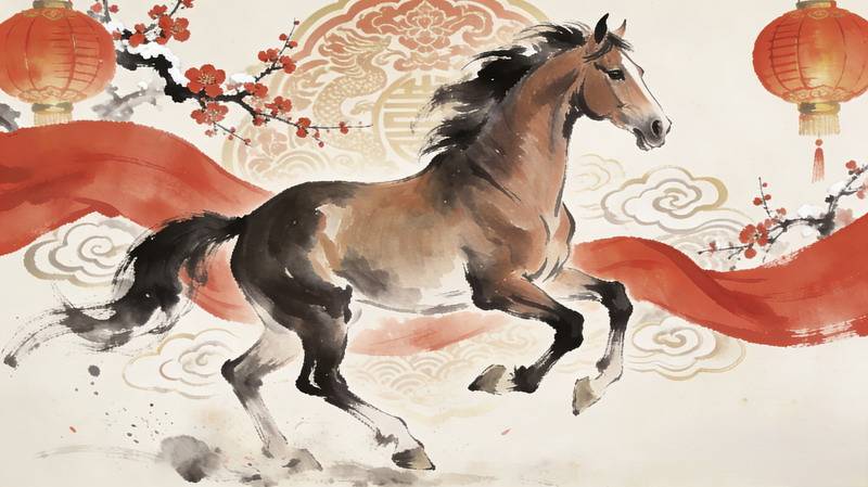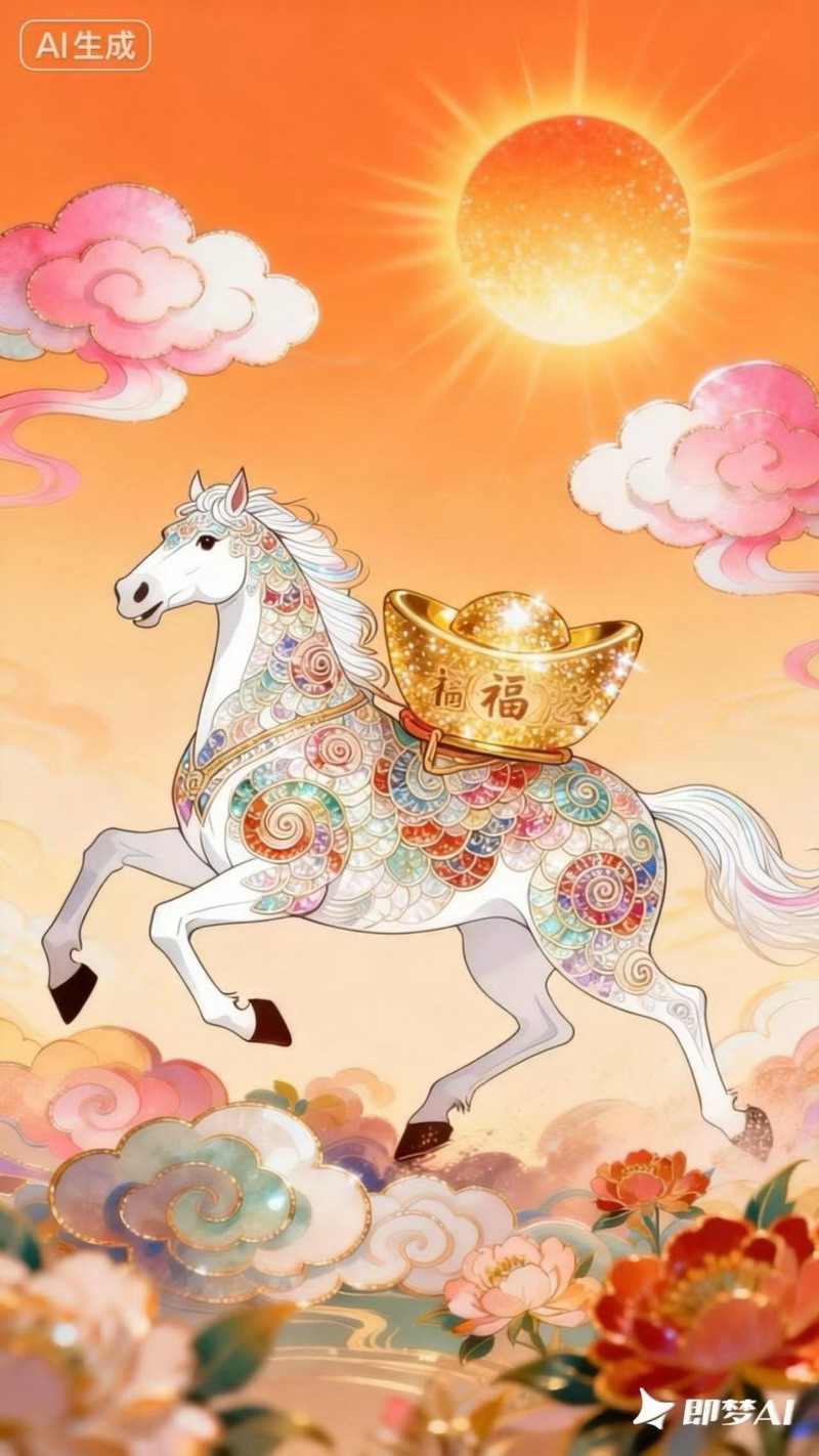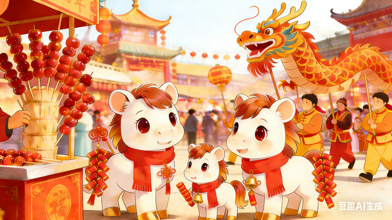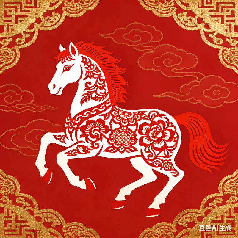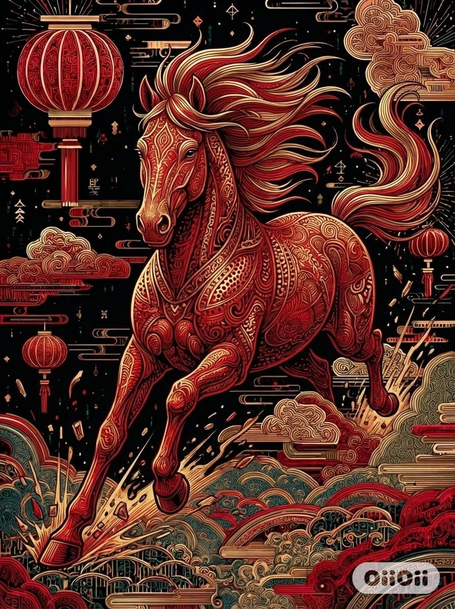 有的作品像一张红彤彤的年画,喜庆又耐看;有的把马与祥云、福字、花卉纹样组合成装饰图案,既传统又新鲜;还有的直接描绘春节活动,让马成为热闹里的主角。