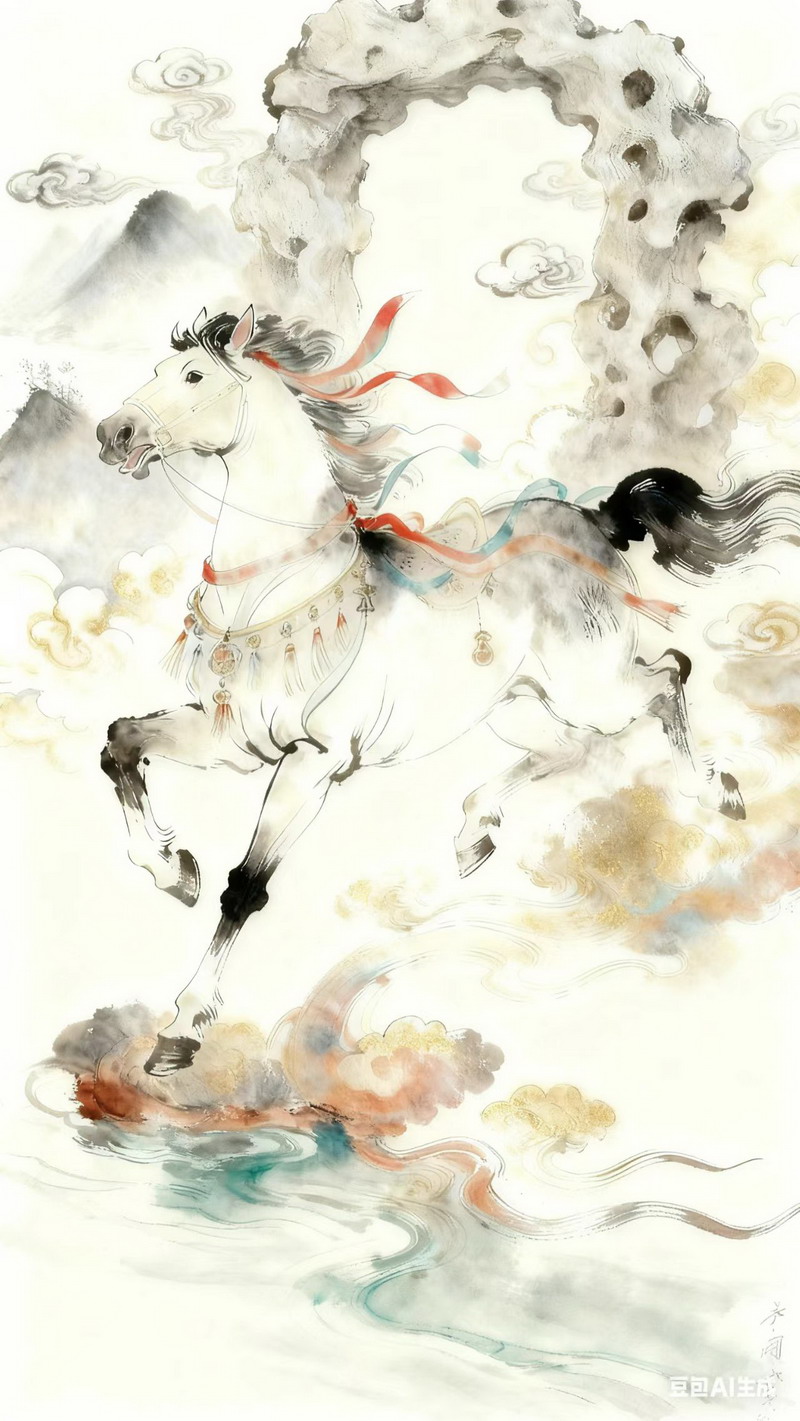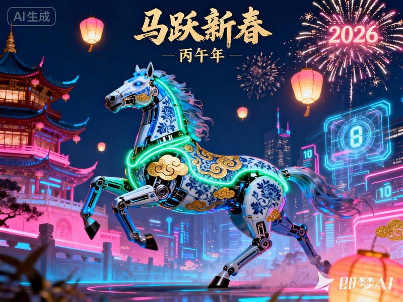 有人为马装上机械铠甲,似乎成为了星际骑士的伙伴;有人用青花瓷材质、能量环与光束构建“科幻马”,奔跑在未来城市的道路上;也有人把马放进时空隧道,让奔跑真正变成“穿越”。